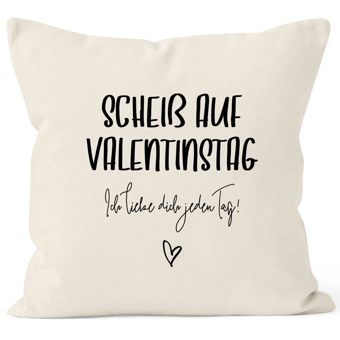 - kreatives Valentinstagsgeschenk: aussagekräftige Kissenhülle mit "Scheiß auf Valentinstag Ich liebe dich jeden Tag" Motiv aus der aktuellen Moonworks® Kollektion