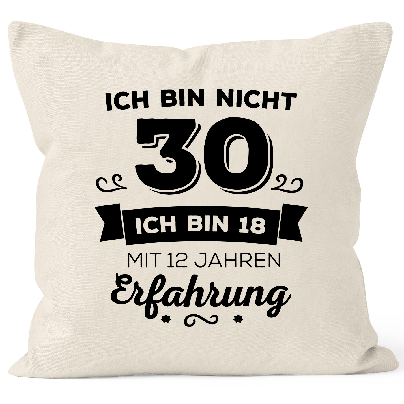 - coole KissenHülle Geburtstags-Geschenk zum {style_variation_string}. {{style_variation_string}_ausgeschrieben_sten} mit tollem Spruch Motiv - Ich bin nicht {style_variation_string} sondern ich bin 18 mit {{style_variation_string}_jahre_erfahrung} Jahren Erfahrung