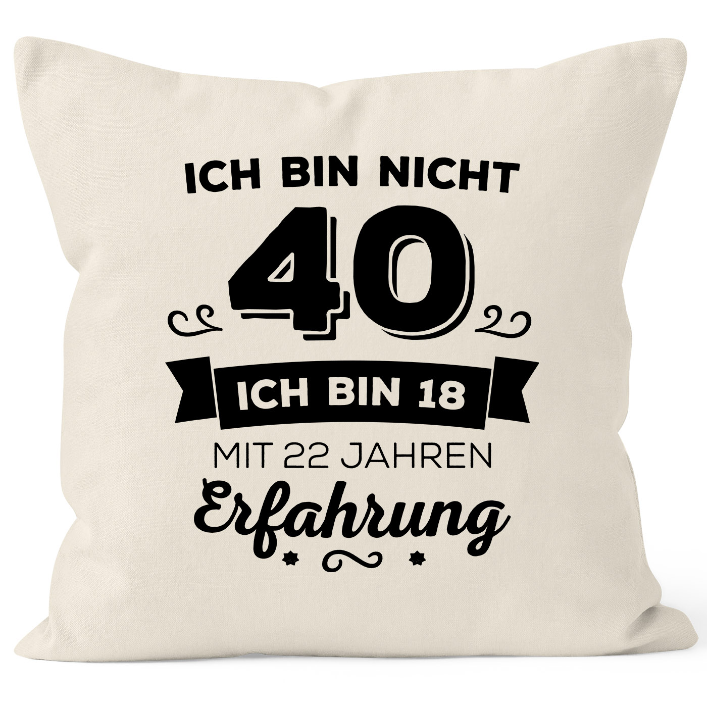 - coole KissenHülle Geburtstags-Geschenk zum {style_variation_string}. {{style_variation_string}_ausgeschrieben_sten} mit tollem Spruch Motiv - Ich bin nicht {style_variation_string} sondern ich bin 18 mit {{style_variation_string}_jahre_erfahrung} Jahren Erfahrung