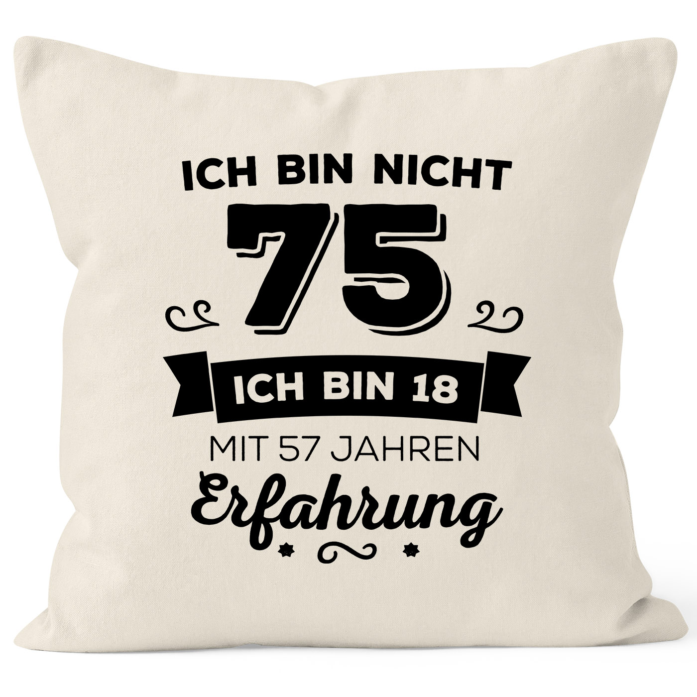 - coole KissenHülle Geburtstags-Geschenk zum {style_variation_string}. {{style_variation_string}_ausgeschrieben_sten} mit tollem Spruch Motiv - Ich bin nicht {style_variation_string} sondern ich bin 18 mit {{style_variation_string}_jahre_erfahrung} Jahren Erfahrung