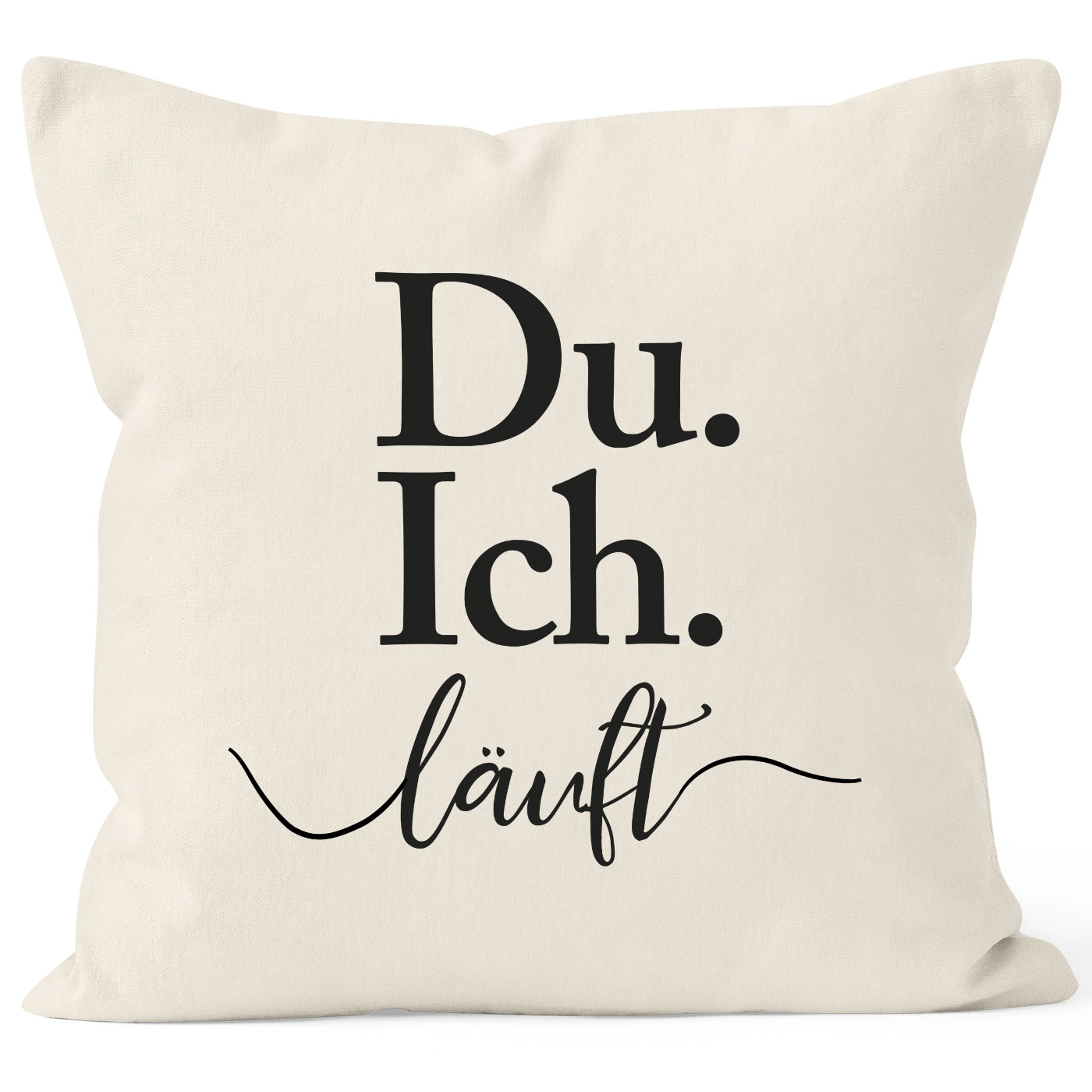 - Bring es auf den Punkt: "Ich. Du. läuft". Dieser Kissenbezug ist eine wunderschönes und dezentes kleines Liebesgeschenk zum Jahrestag oder Valentinstag, zum Geburtstag oder zu Weihnachten - für den Freund, die (Ehe)Frau, für deinen liebsten Schatz