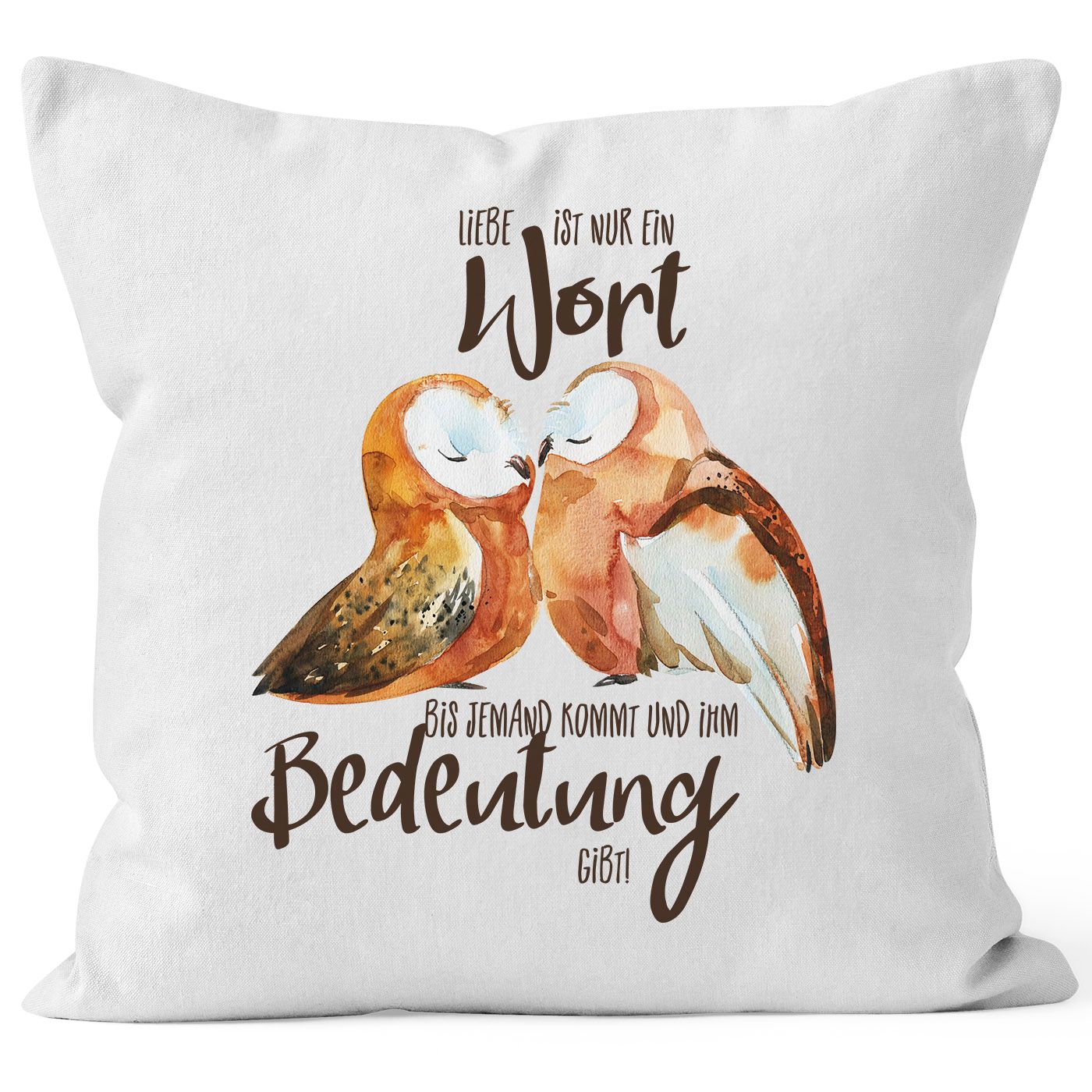 - Das perfekte Geschenk zu Weihnachten, Valentinstag oder dem Hochzeitstag: liebevoll gestalteter Kissenbezug mit "Liebe ist nur ein Wort, bis jemand kommt und ihm Bedeutung gibt" Liebespruch und süßem Eulen Pärchen der Marke Moonworks®.