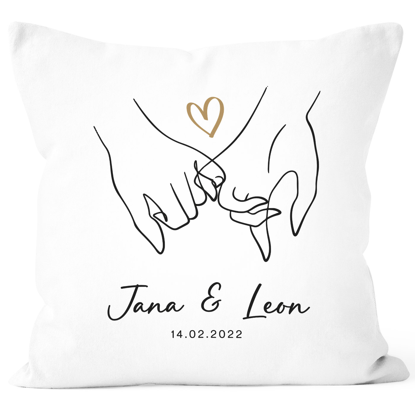 - Mit dieser wunderschönen Kissenhülle zelebriert ihr mit jedem Blick auf die Couch euer Liebesglück! Eine tolle Geschenkidee für frisch ...uind Langzeit Verliebte - zum Jahrestag, Hochzeitstag oder Valentinstag. Das Hände-Motiv im Line-Art Stil ist personalisierbar mit Wunschnamen und Datum