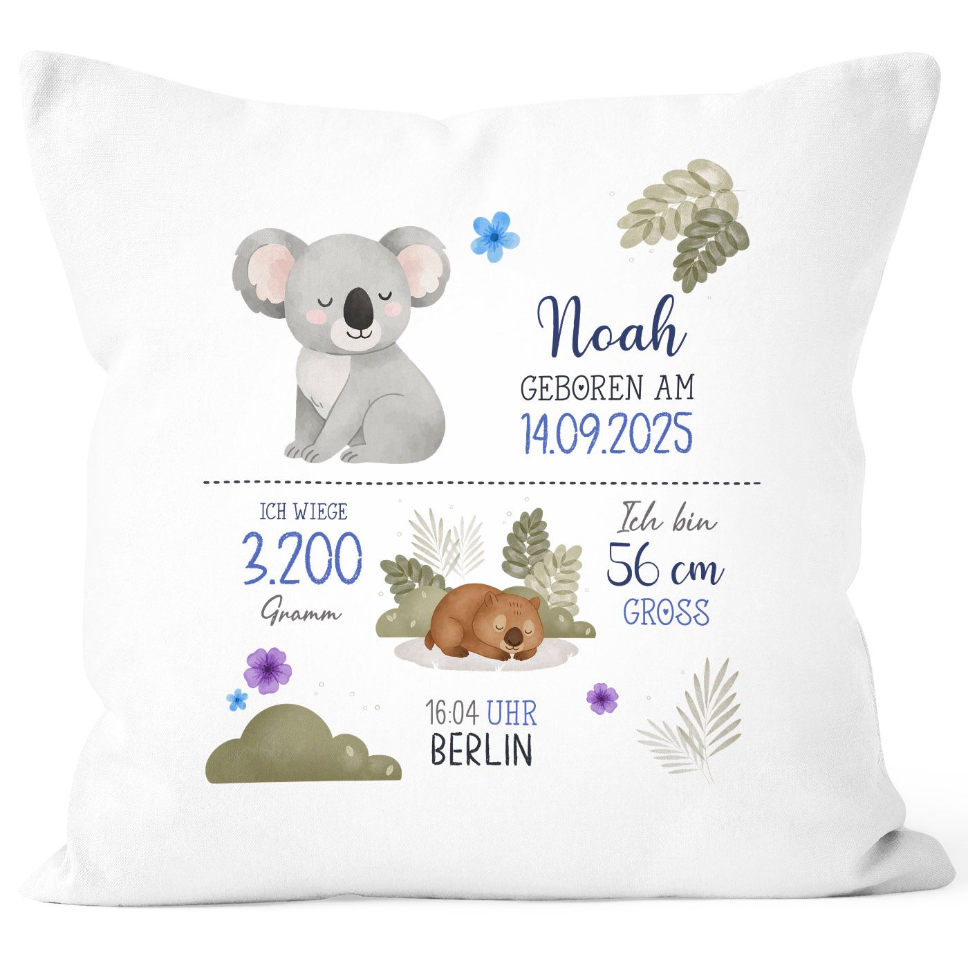 Kissen-Bezug personalisiert mit Name Datum Gewicht Fuchsmotiv KoalaGeburtskissen Geschenk Geburt Baby SpecialMe®