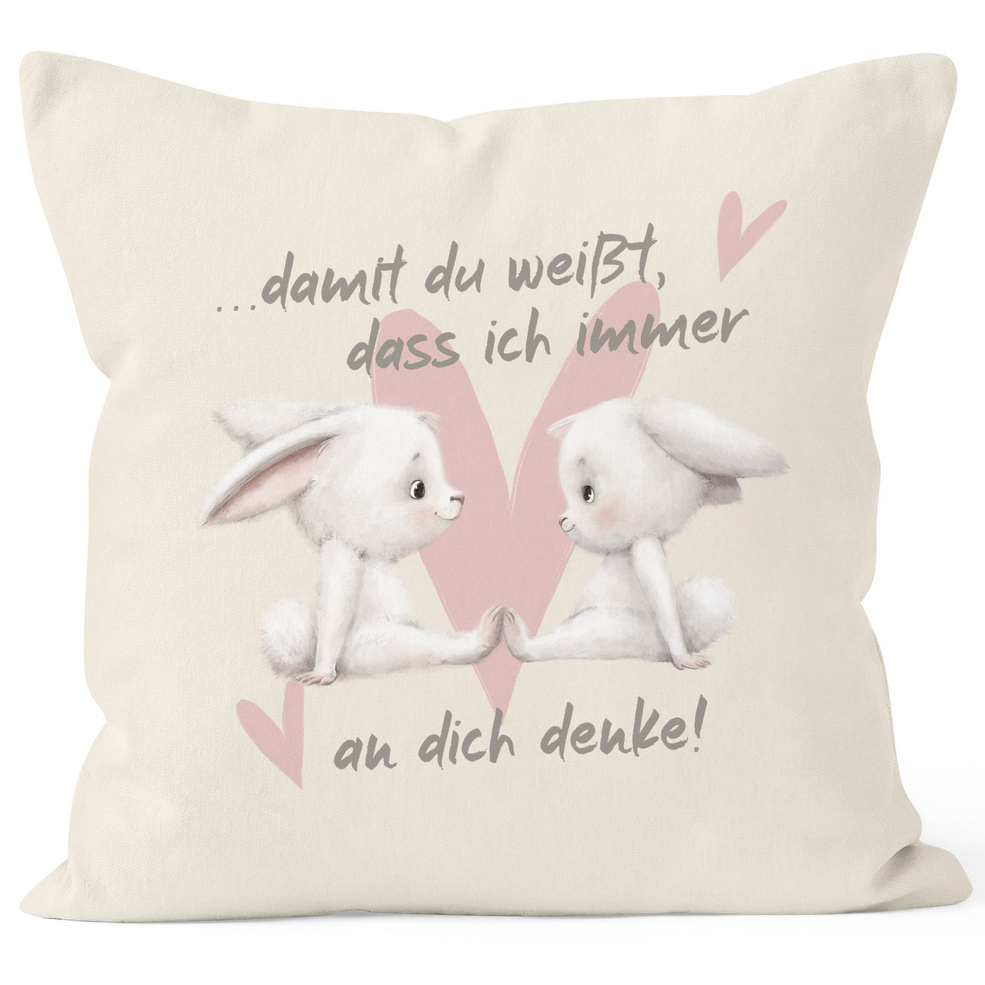 - Tier-Motiv: Hasenpärchenm Herz, Spruch "Damit du weißt, dass ich immer an dich denke"