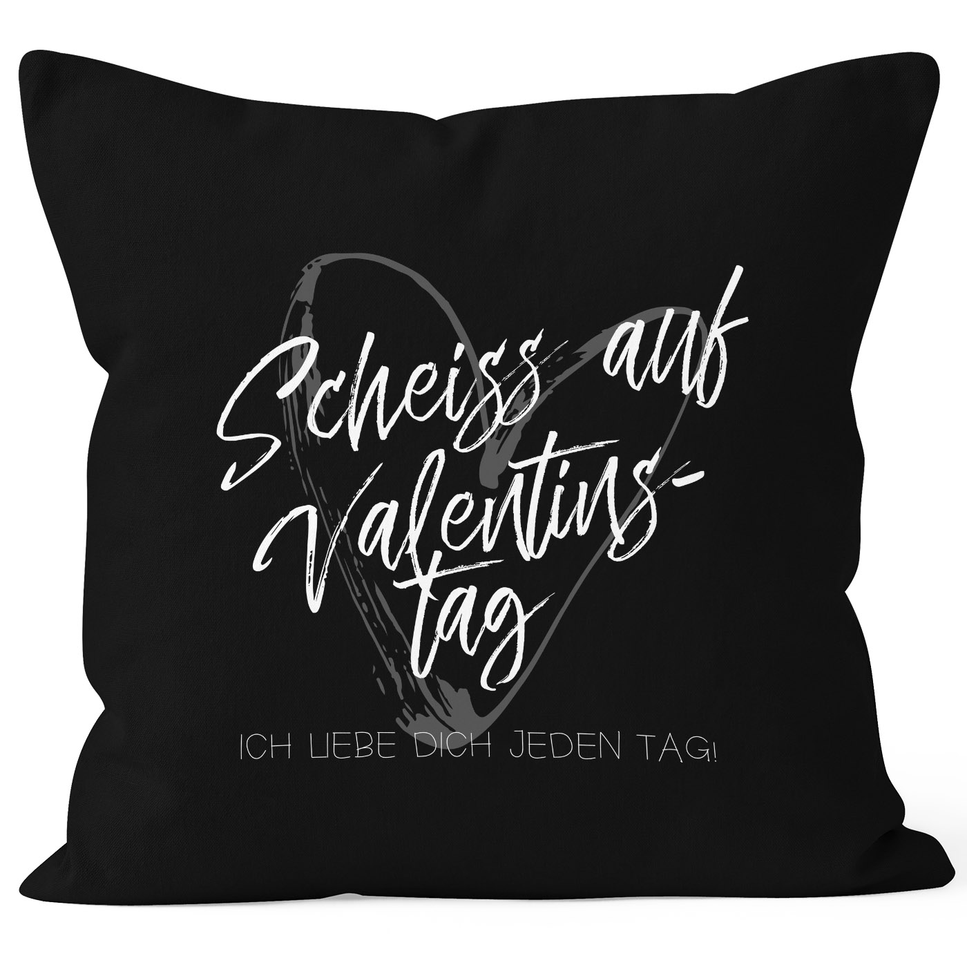 - ausgefalle Kissenhülle als Valentinstagsgeschenk mit "Scheiß auf Valentinstag Ich liebe dich jeden Tag" Motiv aus der aktuellen Moonworks® Kollektion