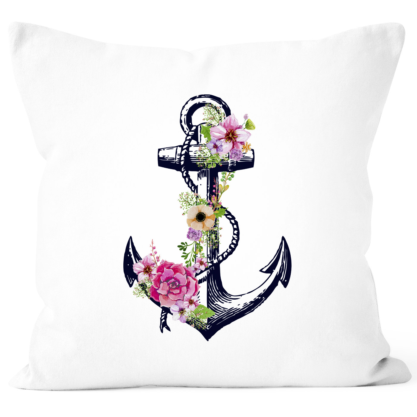 Kissenbezug Blumen Anker Flower Anchor Watercolor 40x40 Baumwolle Autiga®