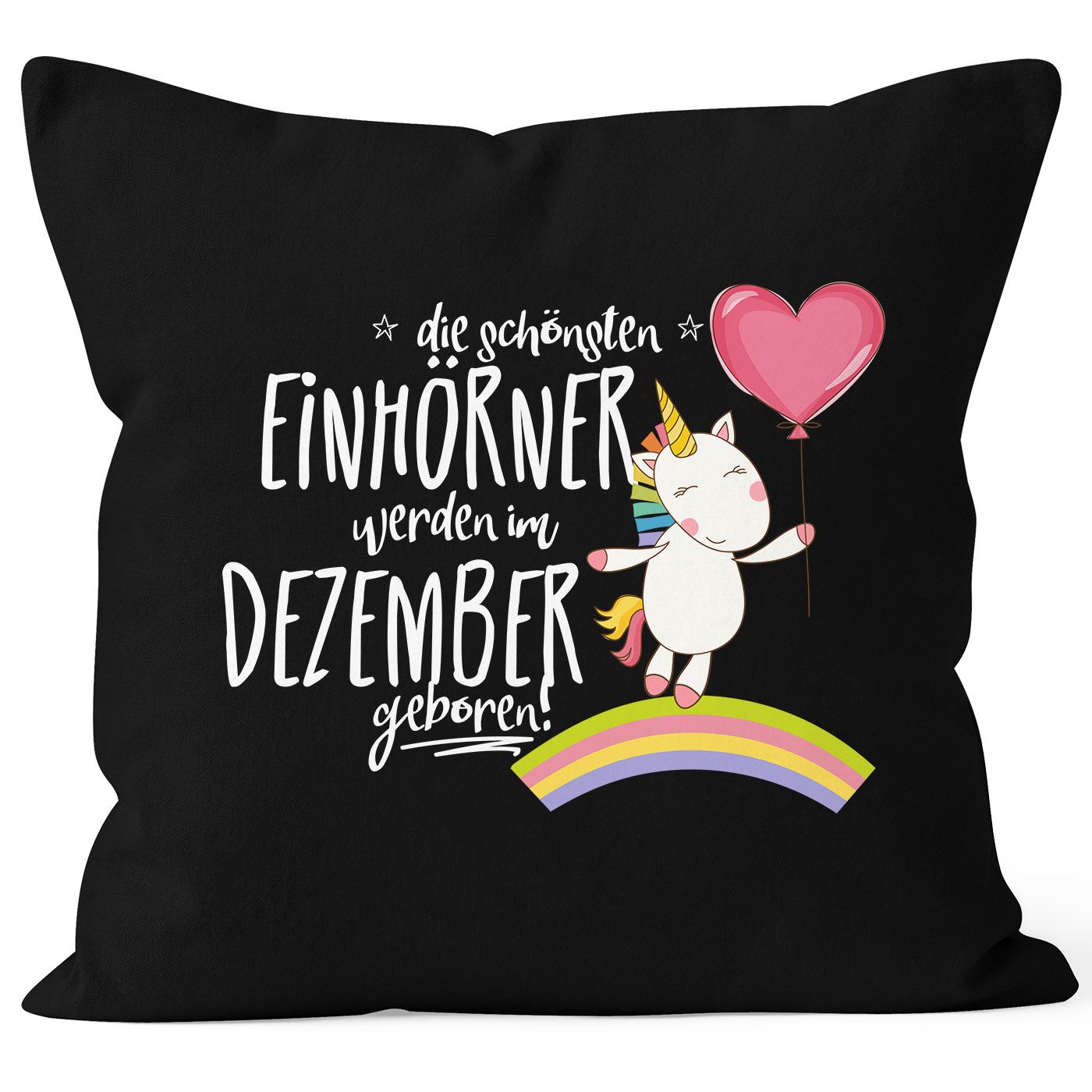 Kissenbezug die schönsten Einhörner werden im Dezember geboren Kissen-Hülle Deko-Kissen 40x40 Baumwolle MoonWorks®