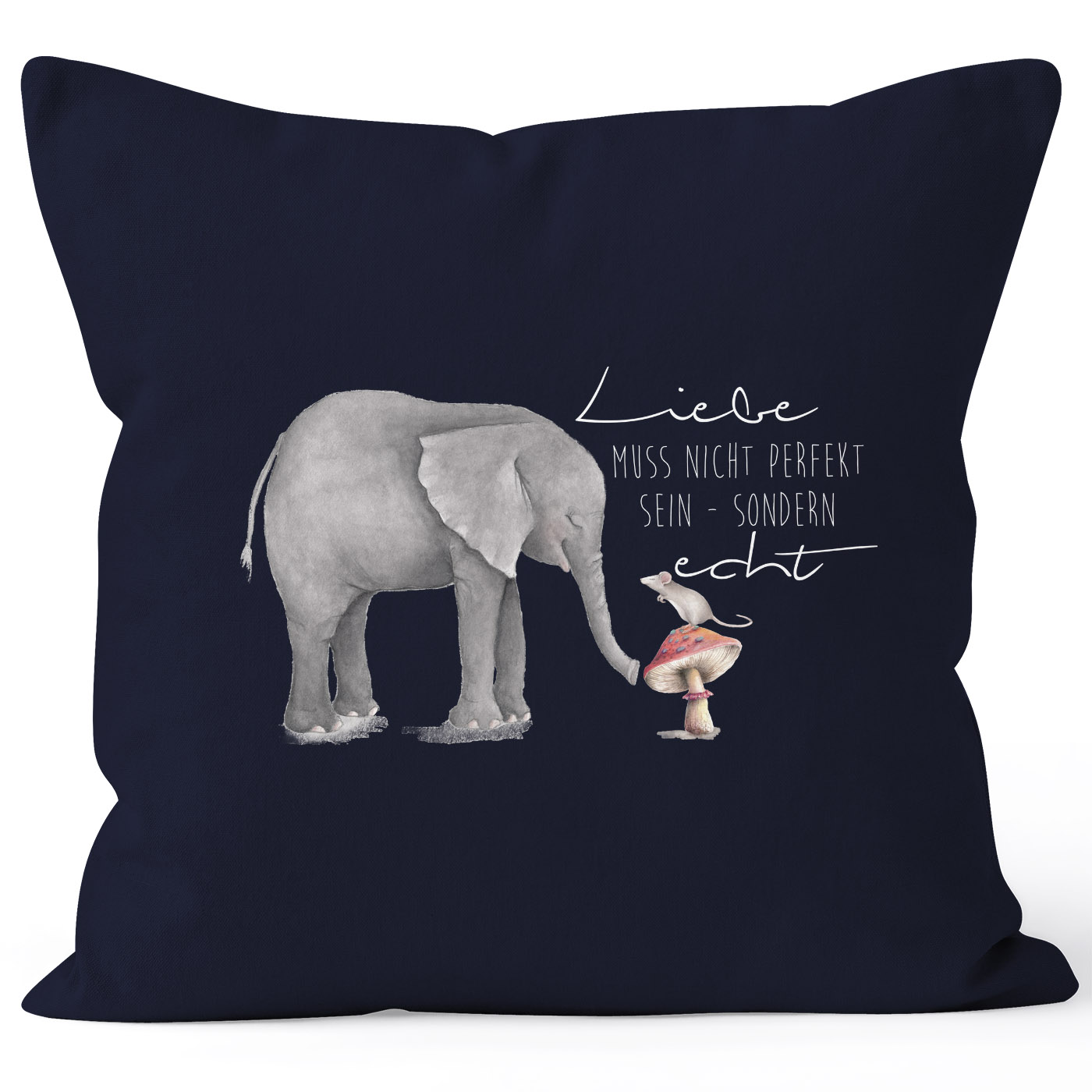 - das perfekte Geschenk: zauberhafte Kissenhülle mit "Liebe muss nicht perfekt sein sondern echt" Spruch und Elefant und Maus Motiv aus der aktuellen Moonworks® Kollektion