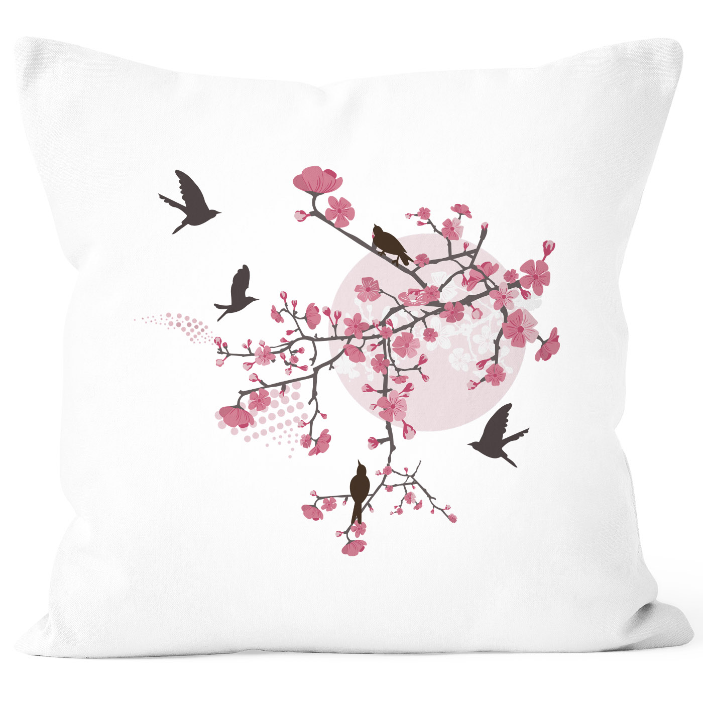- für einen strahlenden Morgen und kleine Lichtblicke an stressigen Tagen: wunderschöne und farbenprächtige Kissenhülle mit Kirschblüten und Vögel im japanischen Stil aus der aktuellen Autiga® Kollektion