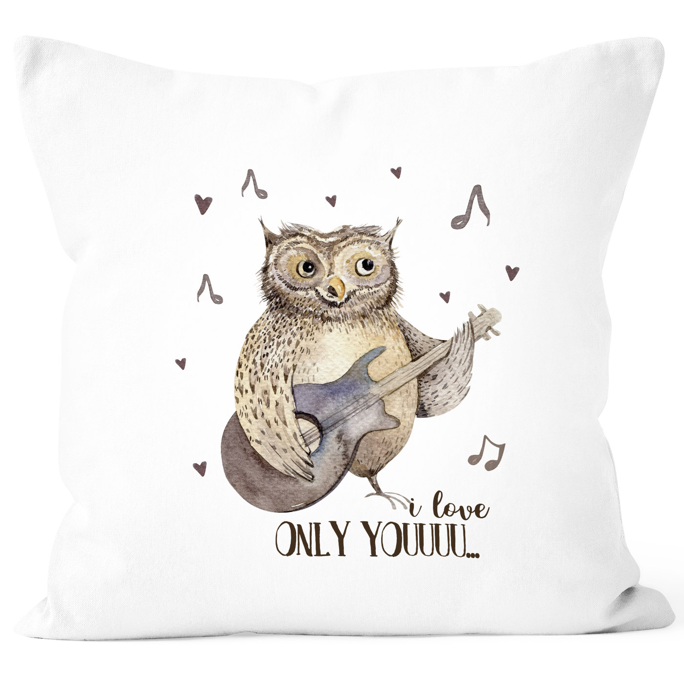 - das perfekte Geschenk für verliebte Paare: einzigartige und aussagekräftige Kissenhülle mit unvergleichlich süßer "i love only you" singender Eule im Watercolor Stil aus der aktuellen Moonworks® Kollektion