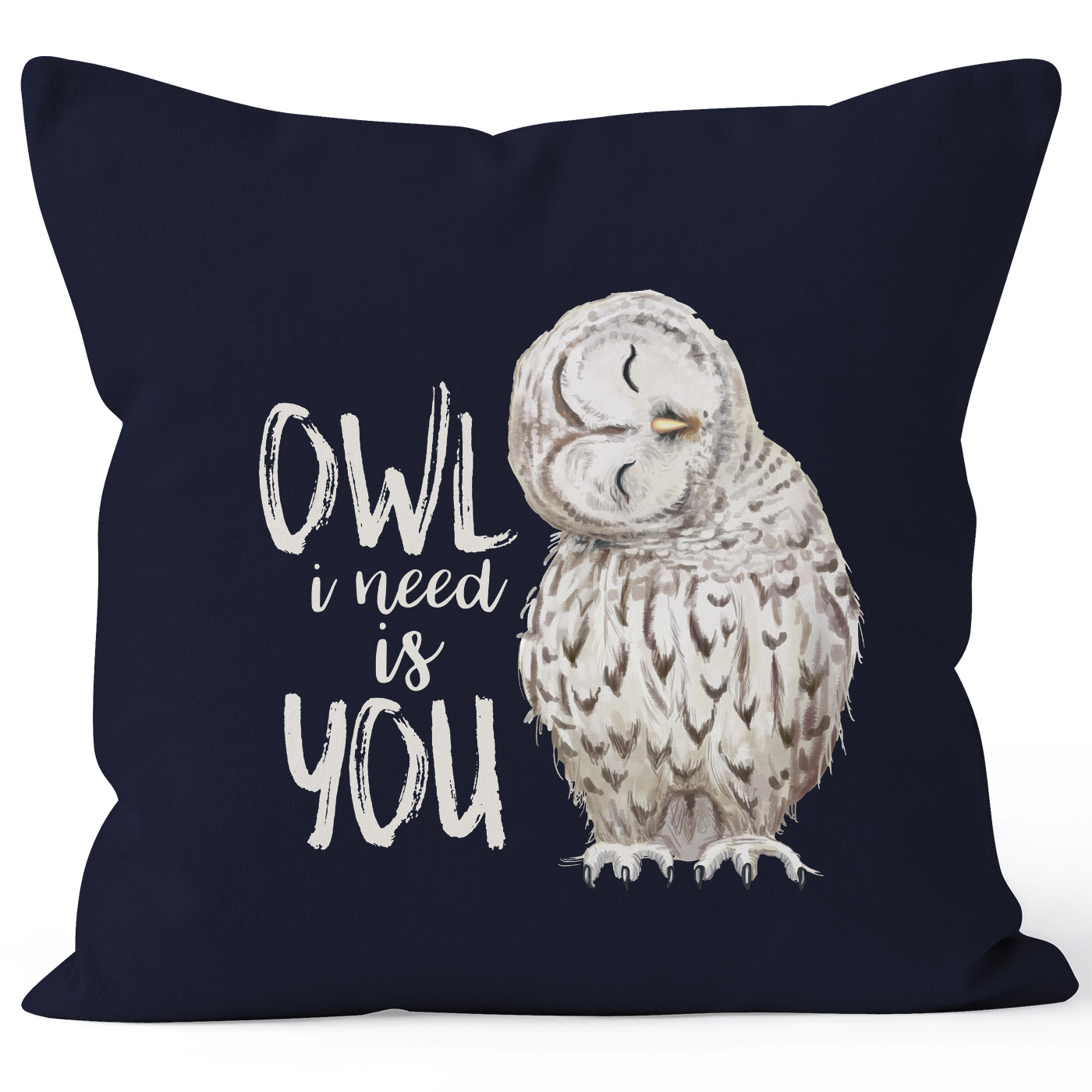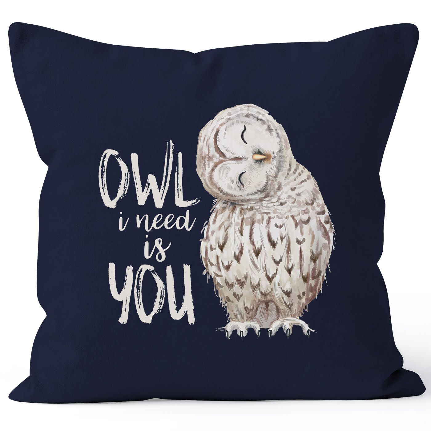 Kissenbezug Owl I need is you All i need is you Liebe Spruch Love Quote lustig verliebt Freund Freundin Kissen-Hülle Deko-Kissen 40x40 Baumwolle MoonWorks®