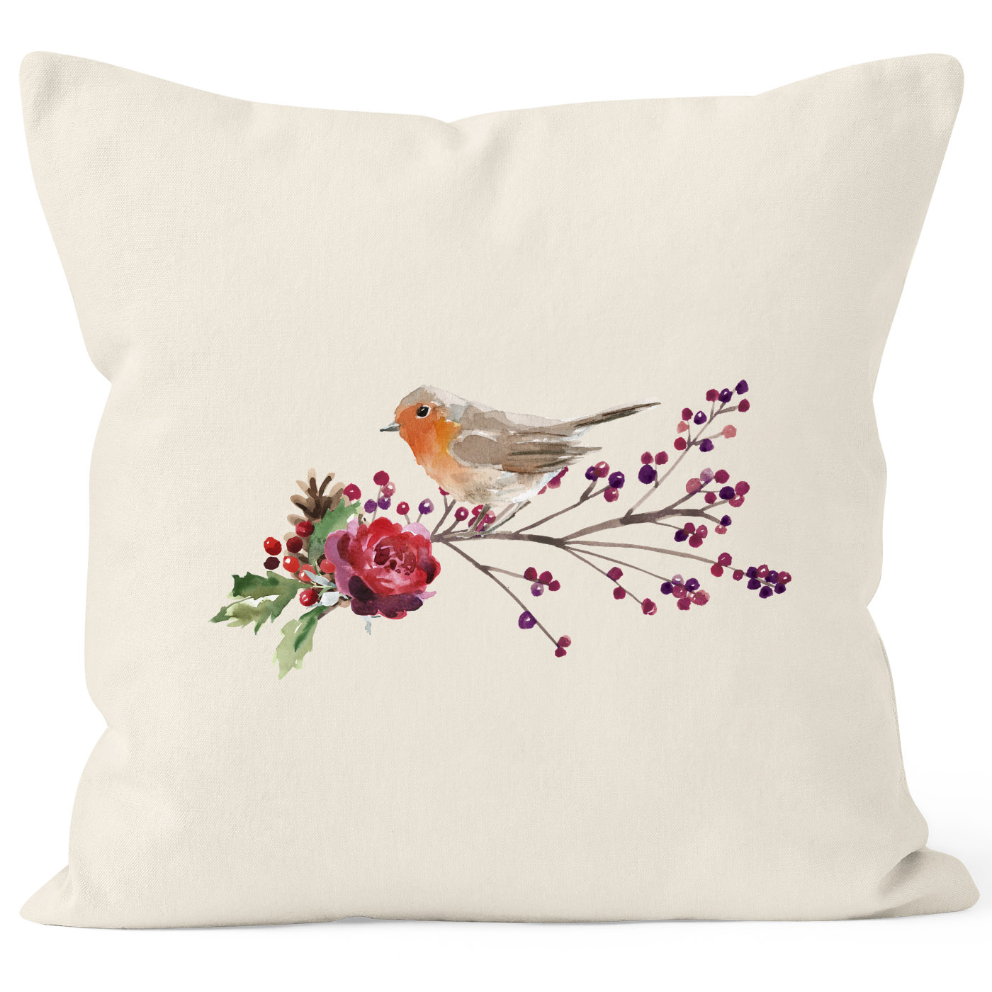 Kissenbezug Vogel Rotkehlchen Blumen Misteln Watercolor Bird Weihnachten Christmas Autiga®