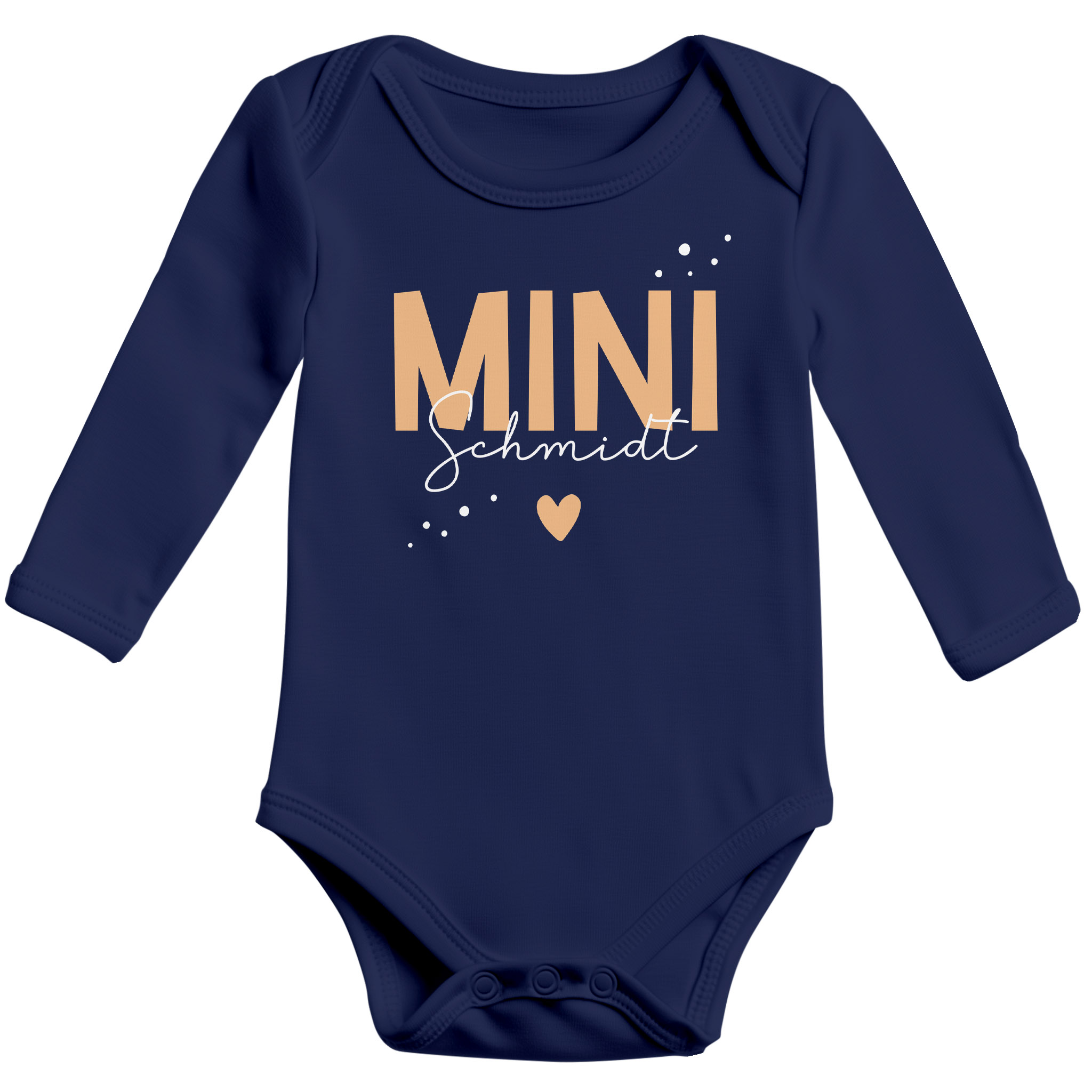 - Babybody mit langen Ärmeln und zauberhaftem Grafik Print personalisiert mit Familiennamen – süßer „Mini Me“-Look für Neugeborene, einzigartiges Outfit für erste Fotos und besondere Erinnerungen