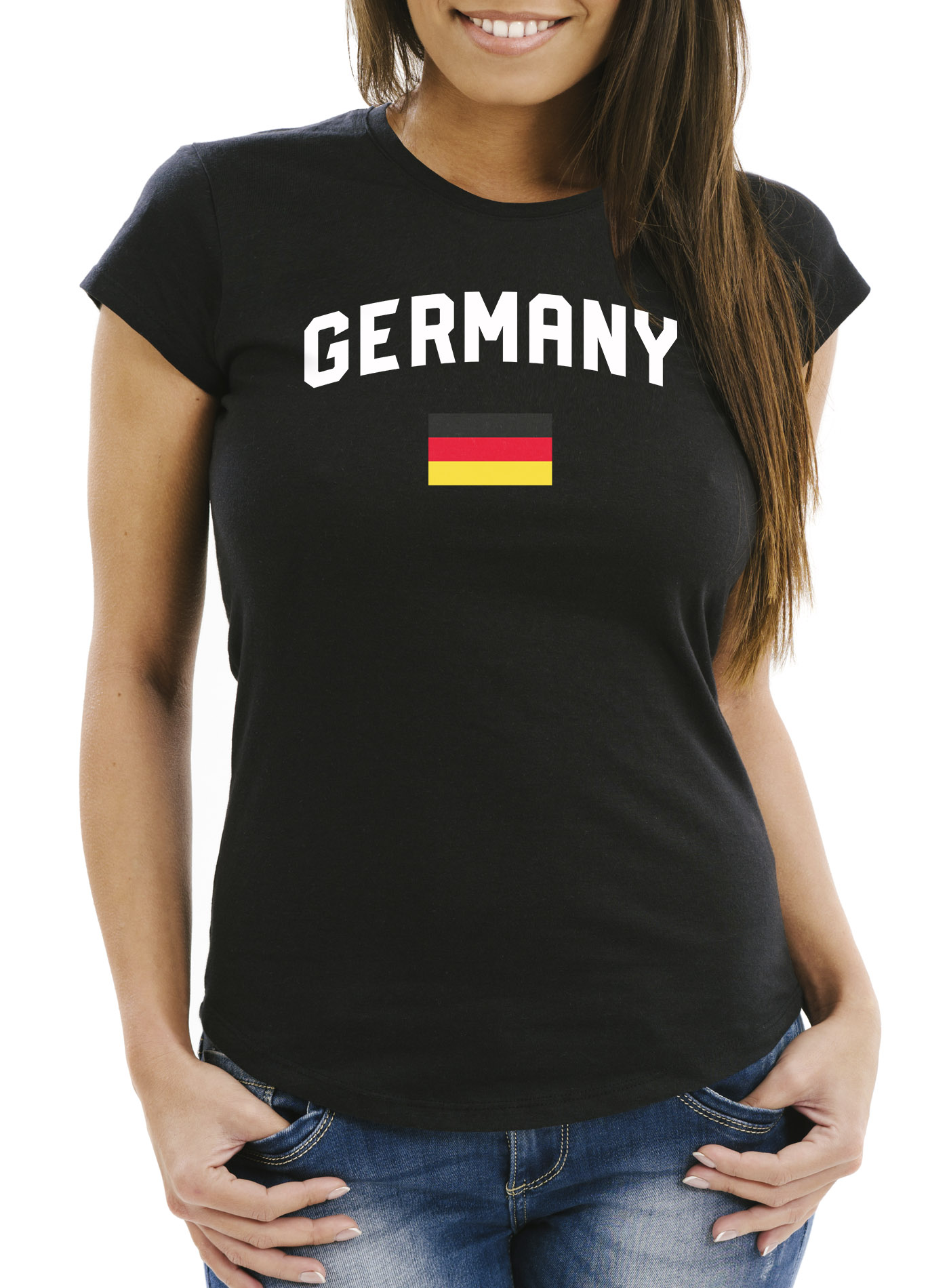 • das Shirt zum anfeuern und mitfiebern: cooles Damen T-Shirt zur WM 2026 mit "Germany" Schriftzug und Deutschland-Flagge der Marke Moonworks®