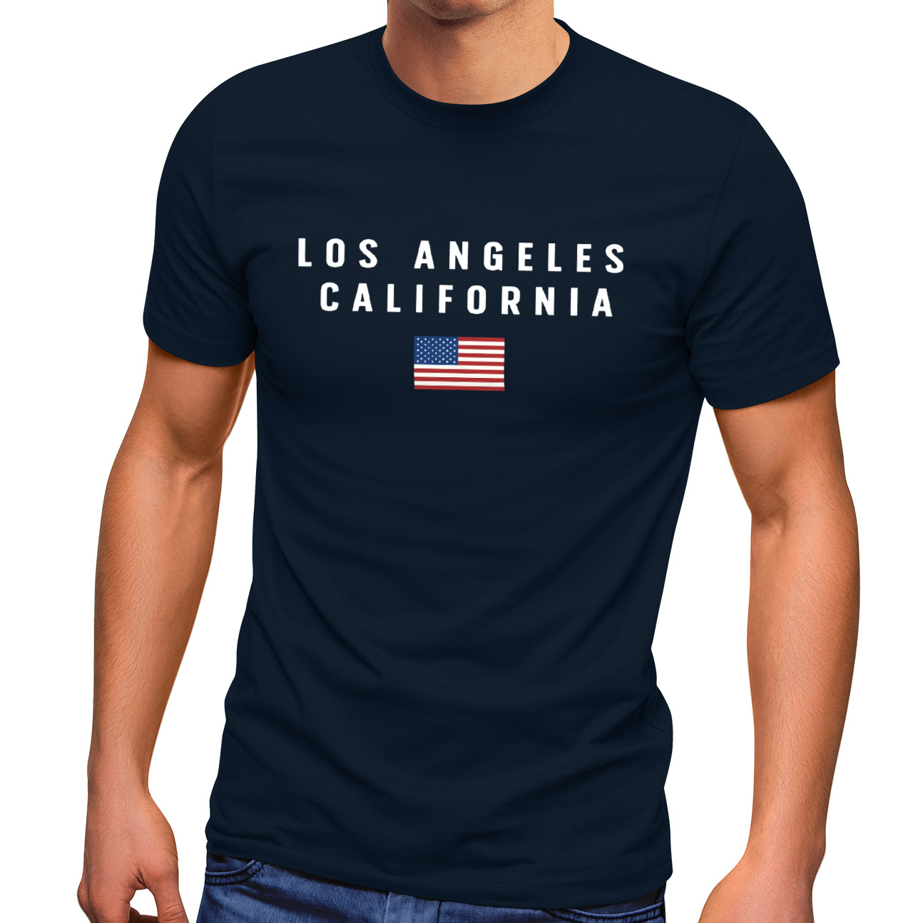 - Cooles Herrenshirt mit minimalistischem Design für Amerika Fans. Der cleane Print mit "Los Angeles - California" Schrift und amerikanischer Flagge passt zu vielen Freizeit-Outfits