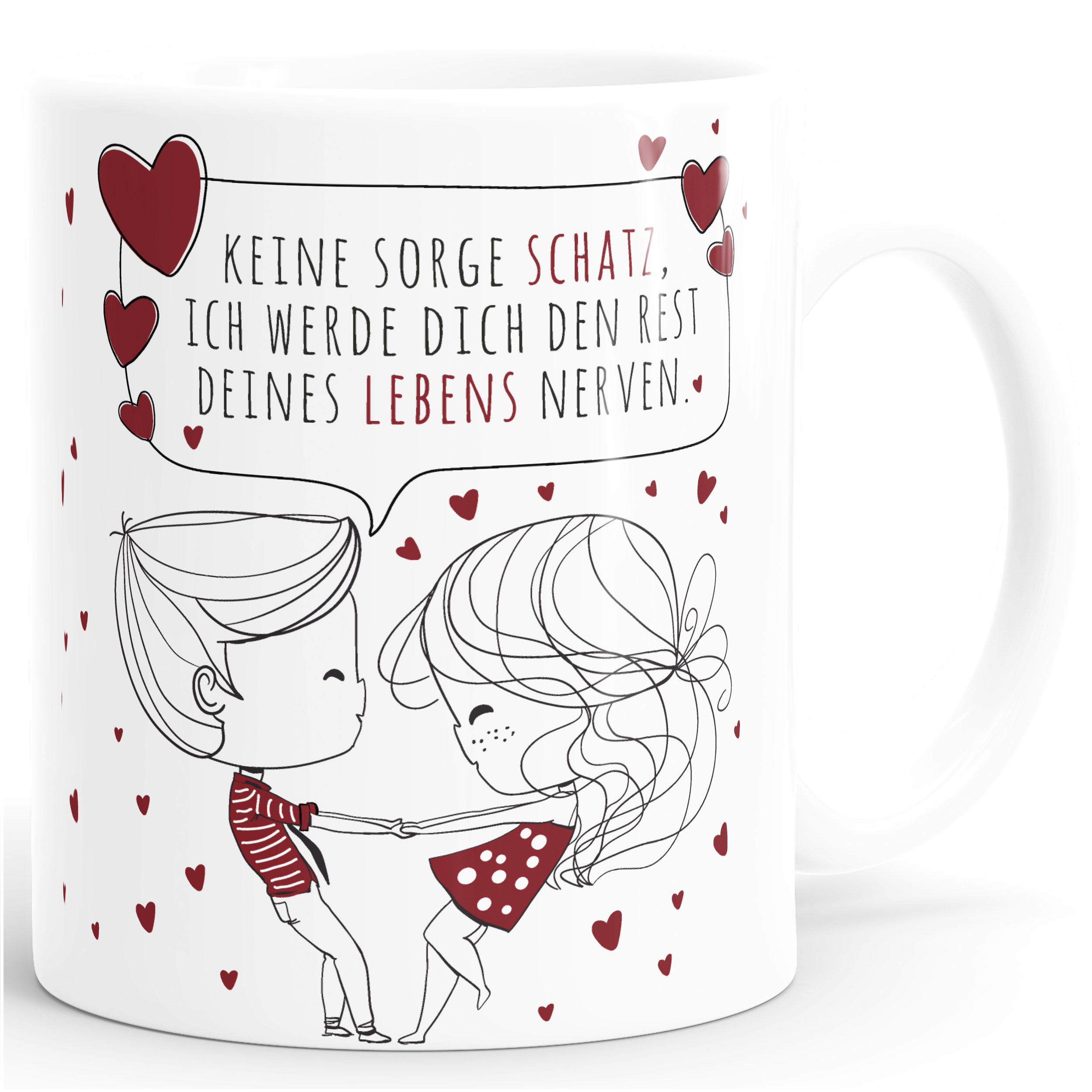 Ein Geschenk um "ich liebe dich" zu sagen, ist eigentlich nicht schwer. Eine ausgefallene Geschenkidee ist da eine Tasse mit persönlicher Note. Persönliche Geschenke sind speziell für diesen einen Menschen gemacht - und damit ein ganz besonderes Unikat! Ob als kleines Dankeschön oder als romantisches Geschenk für den Freundin oder die Freundin: mit dieser Liebes-Tasse, wird dein Partner Tag für Tag an deine Liebe erinnert. Mit der eigenen Personalisierung werden so aus normalen Keramiktassen schnell eine neue Lieblingstasse für den Partner.
