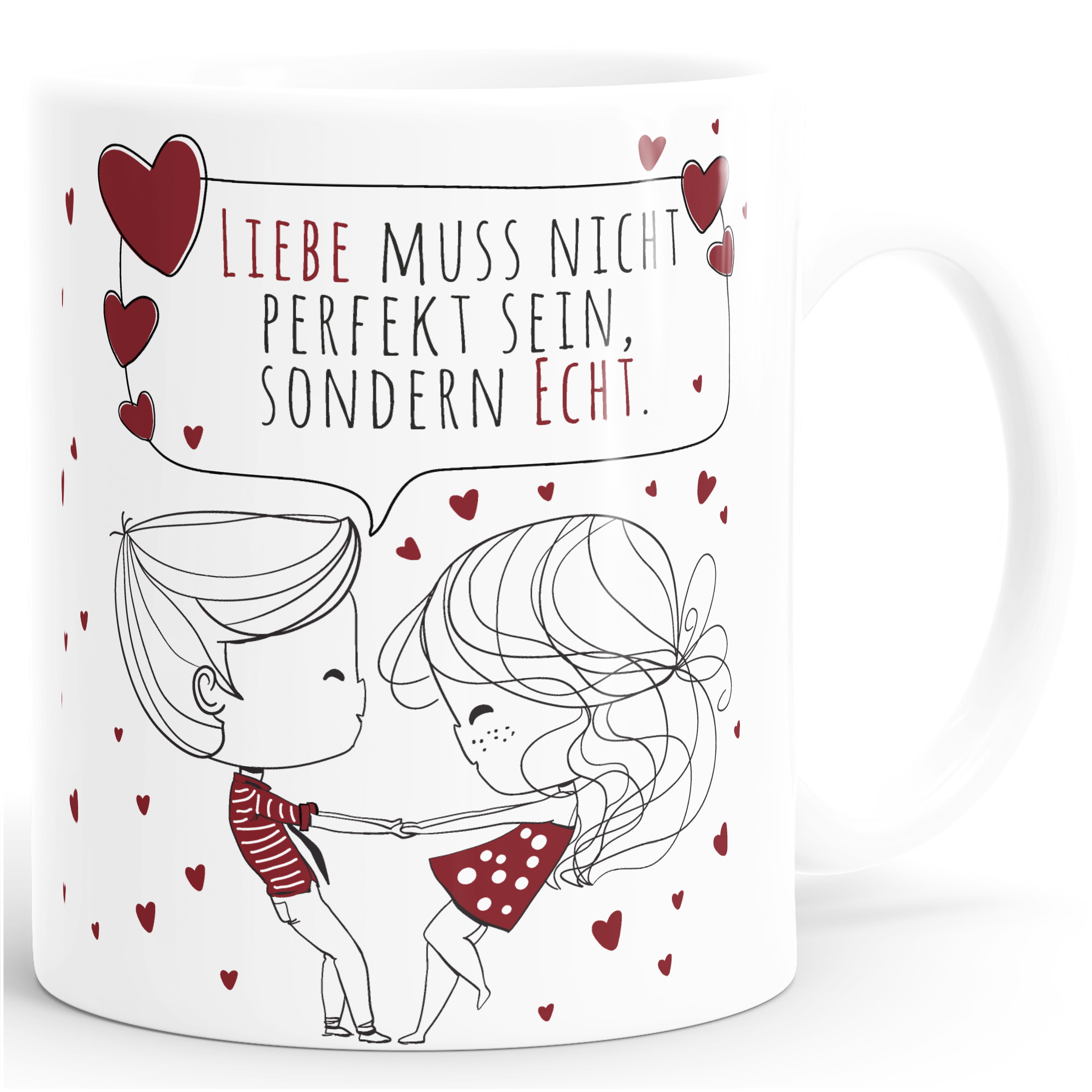 Ein Geschenk um "ich liebe dich" zu sagen, ist eigentlich nicht schwer. Eine ausgefallene Geschenkidee ist da eine Tasse mit persönlicher Note. Persönliche Geschenke sind speziell für diesen einen Menschen gemacht - und damit ein ganz besonderes Unikat! Ob als kleines Dankeschön oder als romantisches Geschenk für den Freundin oder die Freundin: mit dieser Liebes-Tasse, wird dein Partner Tag für Tag an deine Liebe erinnert. Mit der eigenen Personalisierung werden so aus normalen Keramiktassen schnell eine neue Lieblingstasse für den Partner.