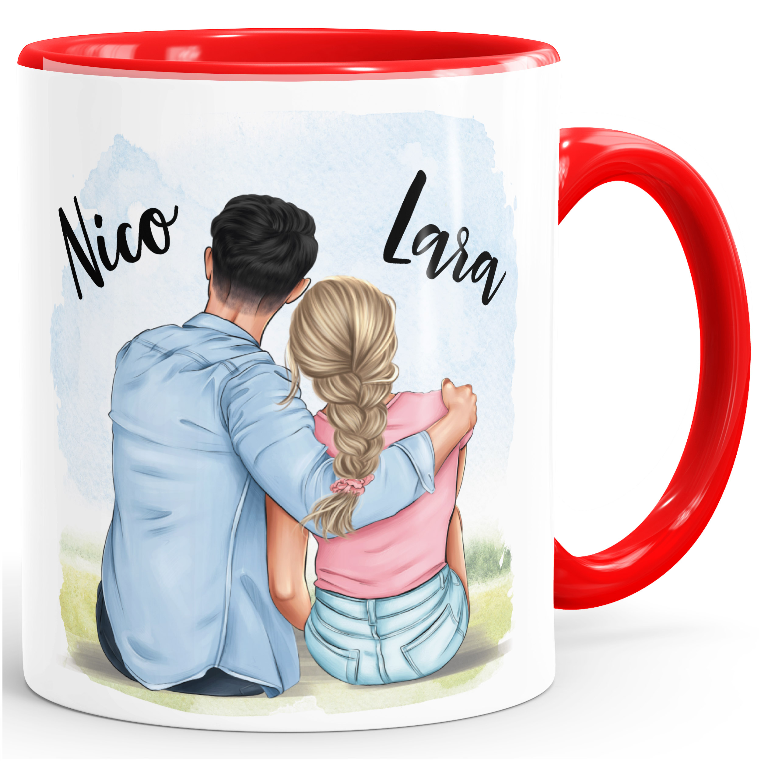 - Einfach online Tasse selbst gestalten - Vorder- und Rückseite sind jeweils individuell anpassbar. Gestalte euer Pärchenbild nach deinen Vorstellungen. Wähle Haarfarbe, Frisur, Kleidung und optional einen Hintergund aus -passe eure Namen an und evtl. Wunschtext für die Rückseite