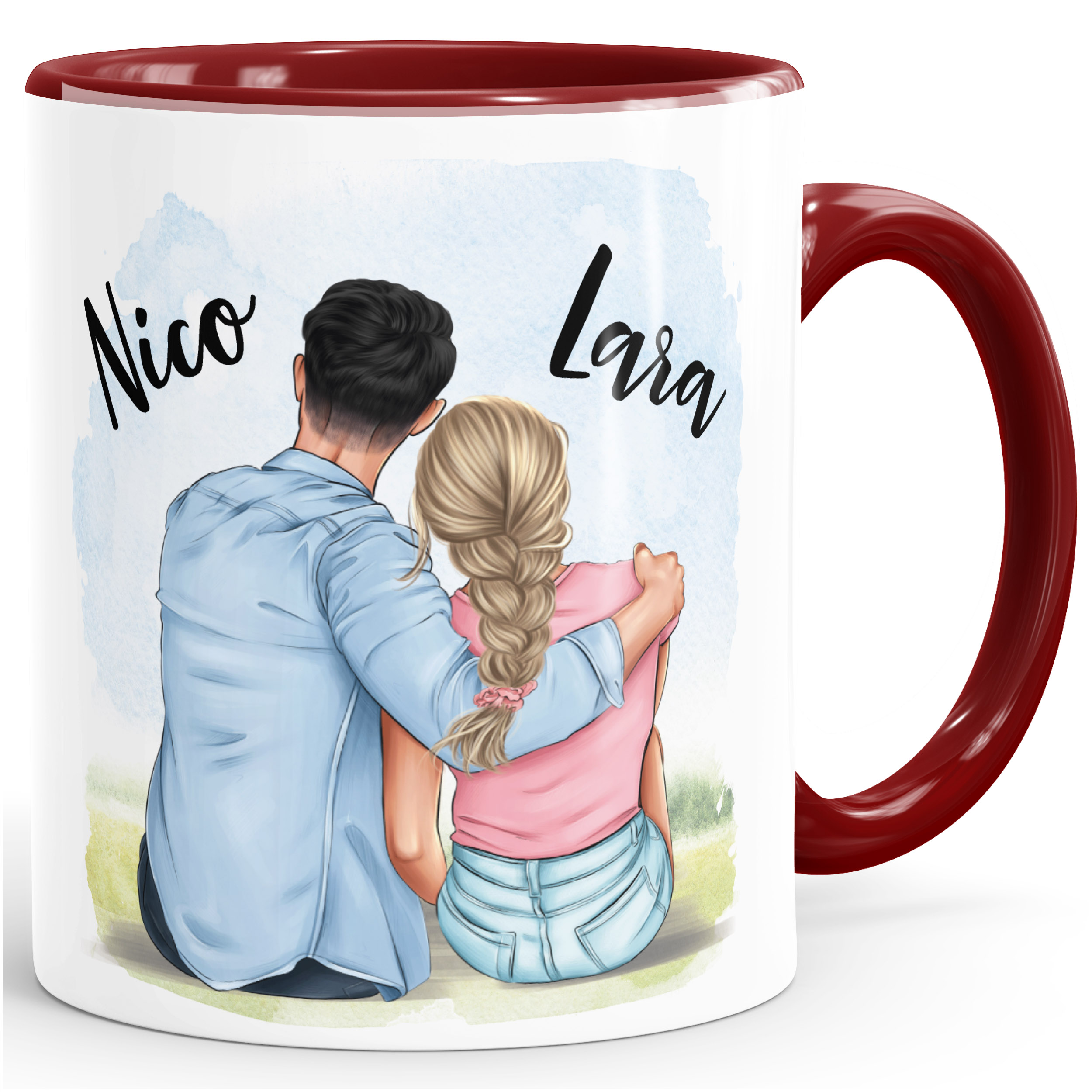 - Einfach online Tasse selbst gestalten - Vorder- und Rückseite sind jeweils individuell anpassbar. Gestalte euer Pärchenbild nach deinen Vorstellungen. Wähle Haarfarbe, Frisur, Kleidung und optional einen Hintergund aus -passe eure Namen an und evtl. Wunschtext für die Rückseite