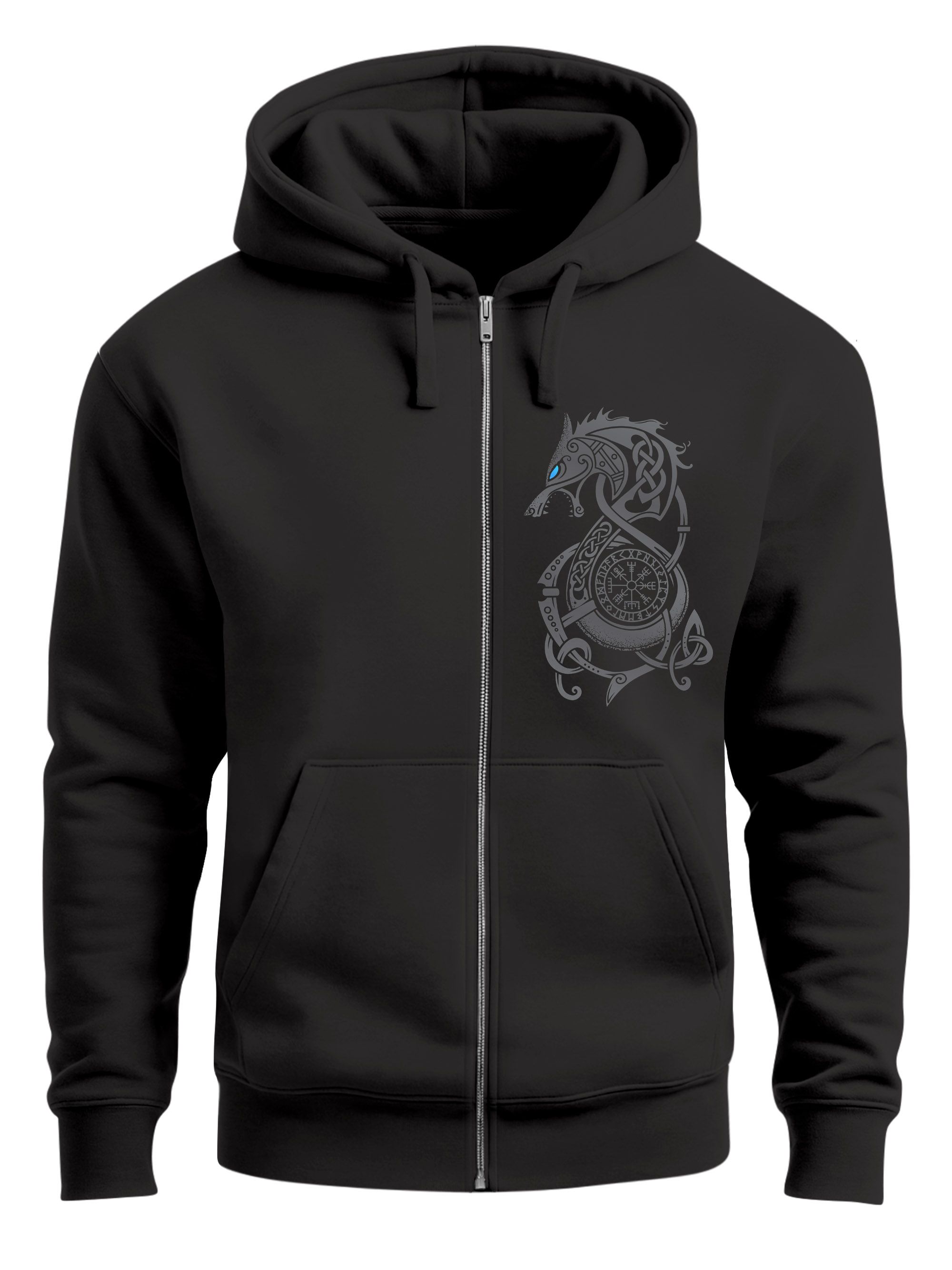 - Ein Must Have für alle Freunde nordischer Mythologie und der Sagenwelt um Göttervater Odin! Diese Kapuzen-Sweatjacke für Männer mit coolem Print bestehend aus Fenris-Wolf und nordischem Kompass gehört definitv in jeden Kleiderschrank eines modernen Wikinger