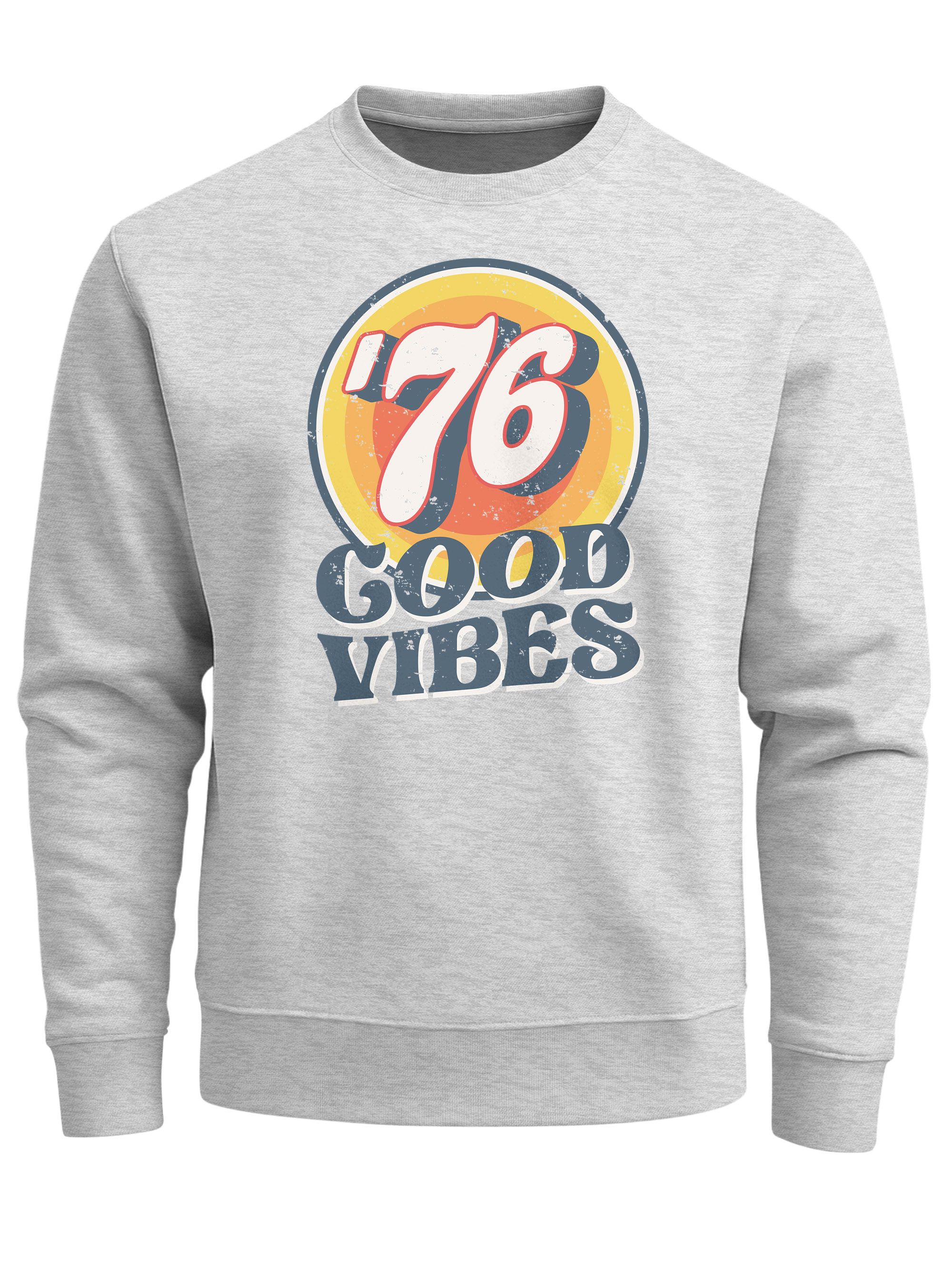 - Cooler Basic Sweatpullover für Männer mit individuellem Eyecatcher. Der "Good Vibes" Brustprint versprüht Retro Charme und gute Laune. Ein Herrenpullover aus weichem Jersey, der zu vielen Styles und Gelegenheiten passt