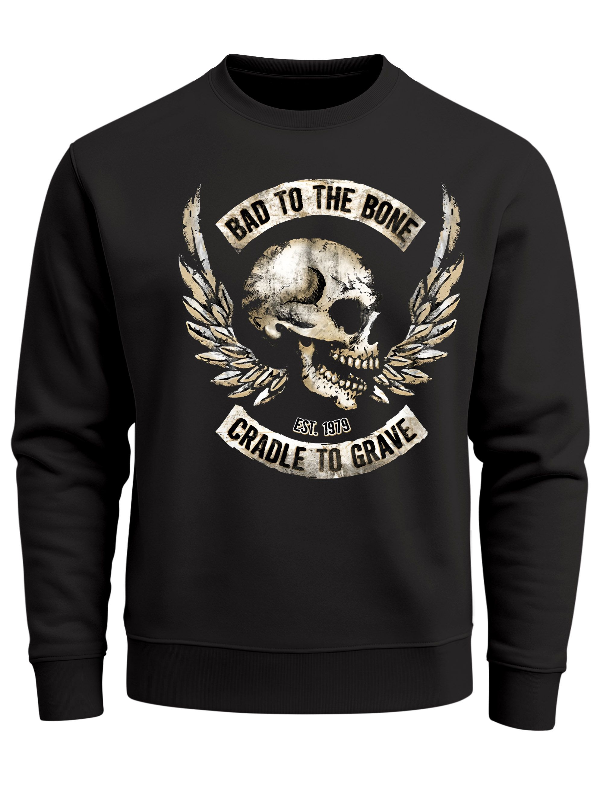 - der zeitlose Klassiker mit Totenkopf Skull Wings Print - das Herren Sweatshirt