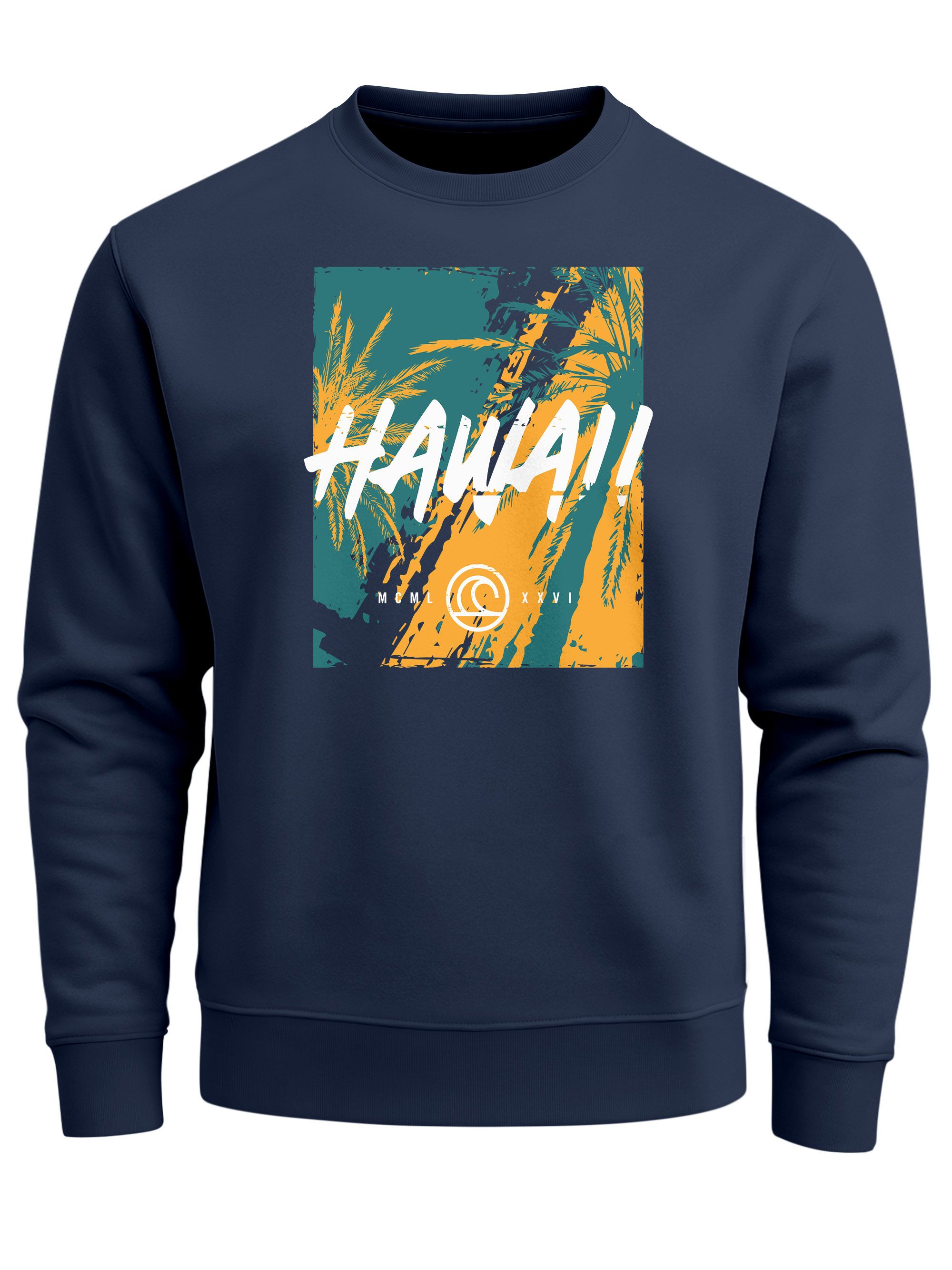 - Stylisher Sweat-Pulli für Männer mit Palmen-Print und Schriftzug "Hawaii"