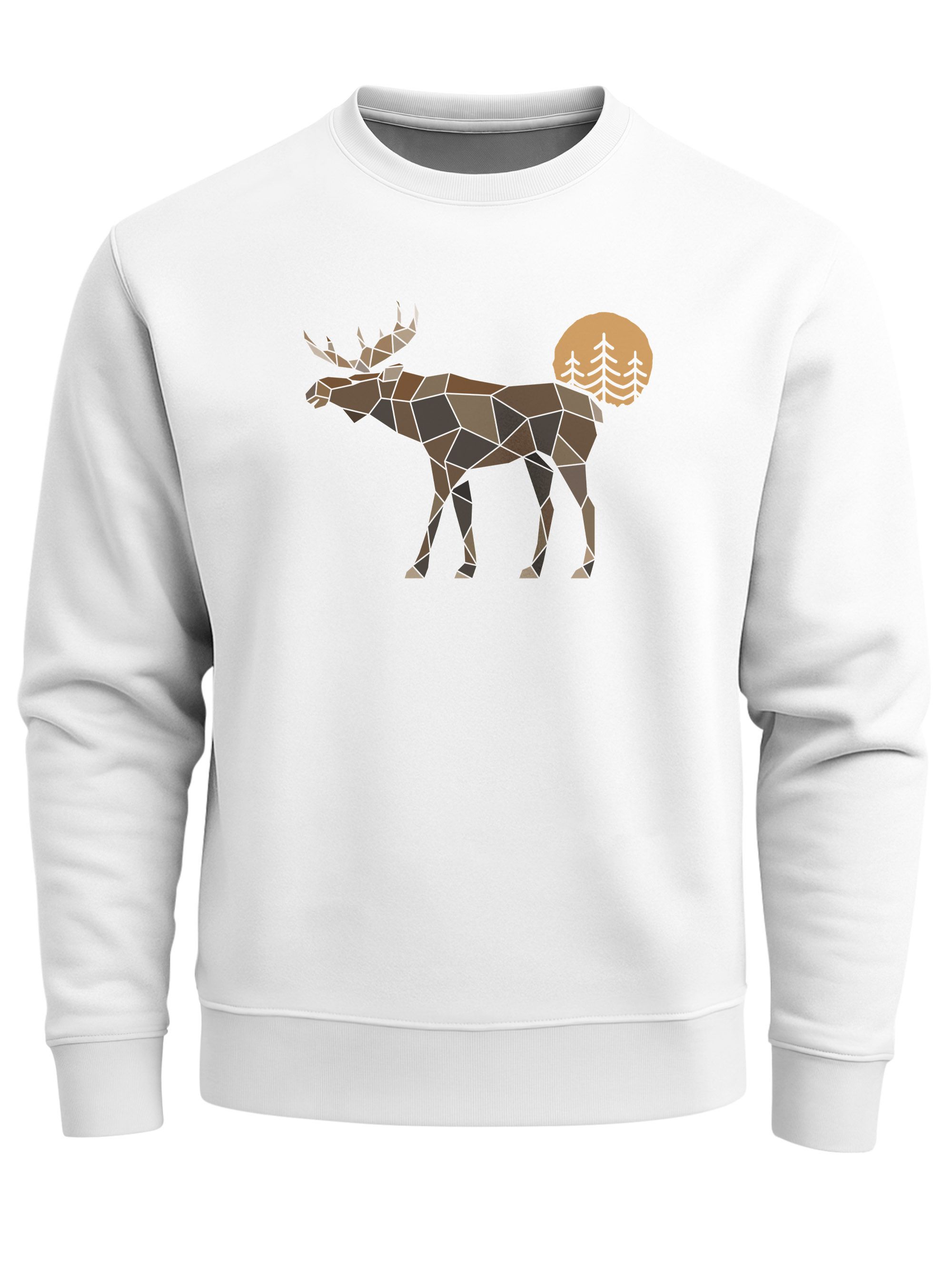 - Cooler Sweatpulli für Männer mit Elch-Print im angesagtem Polygon-Design. Ein lässiger Pullover für Outdoor-Freunde und Naturliebhaber