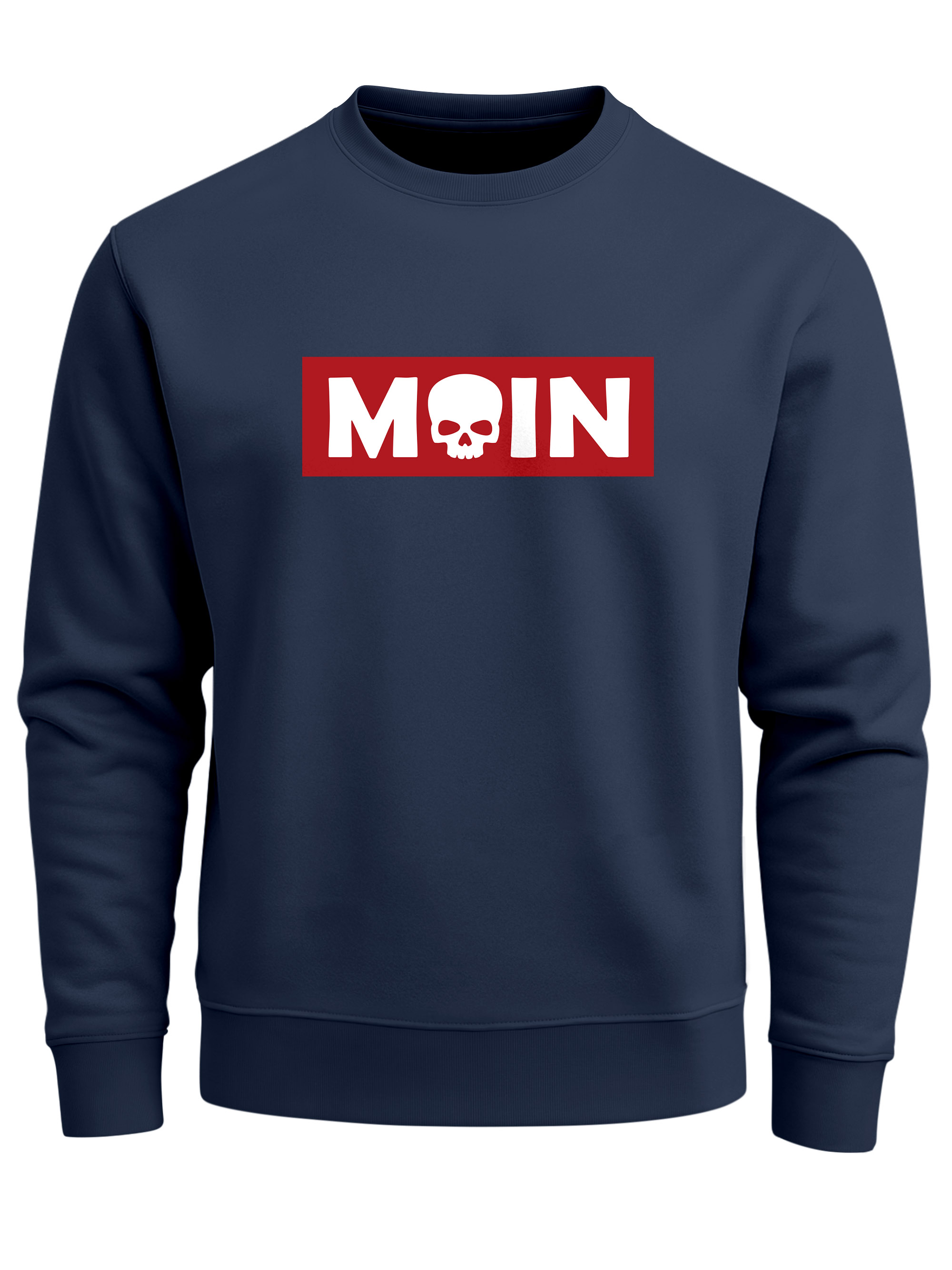 - Cooler Sweat-Pullover für Männer mit rotem Balken und Aufschrift "Moin". Kombiniert mit Totenkopf ist das individuelle Design ein echter Hingucker und ein Must Have für alle Nordlichter