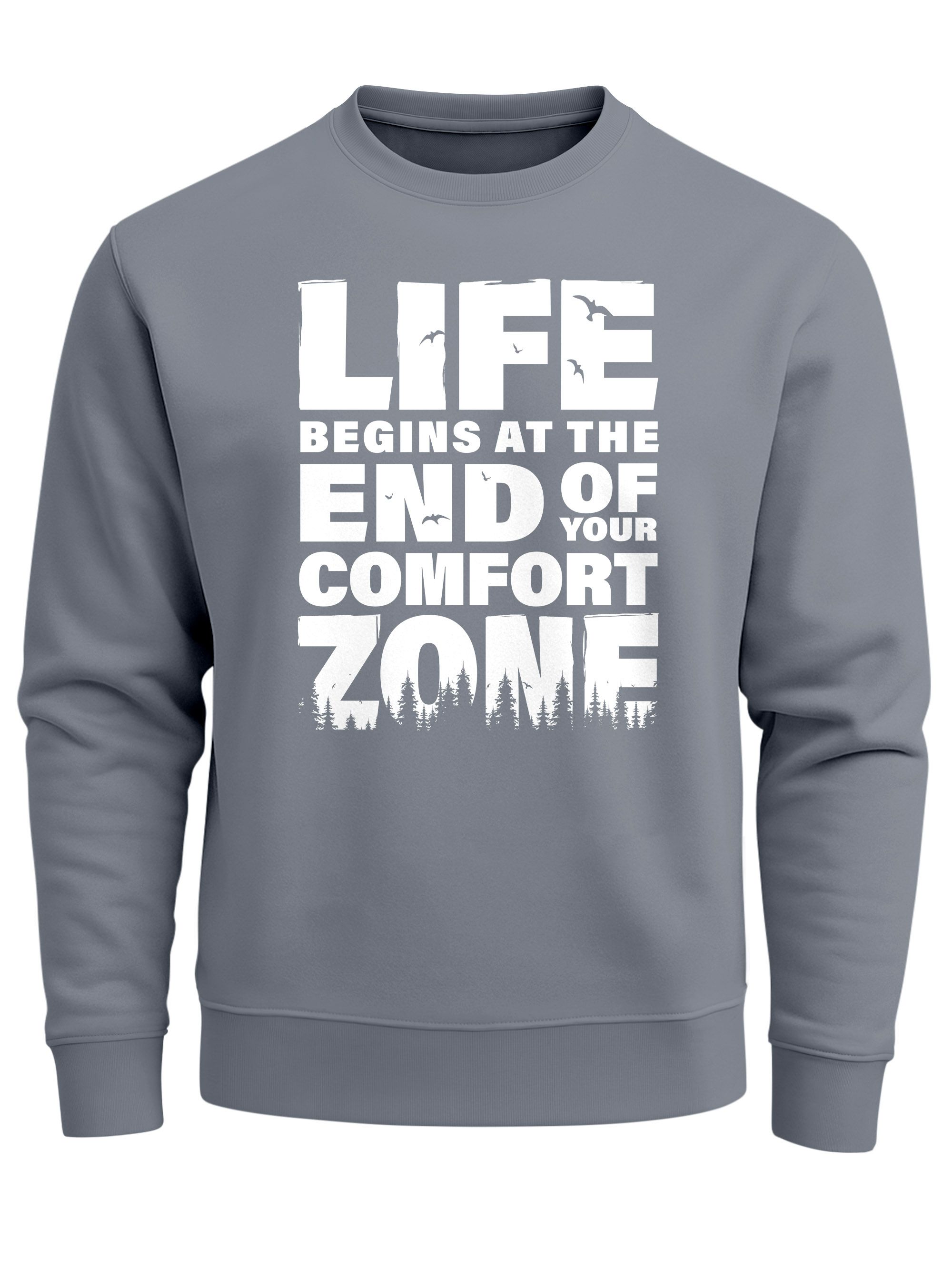 Sweatshirt Herren ohne Kapuze Spruch End of your comfort Zone Pullover Graphic Fashion Streetwear Neverless®