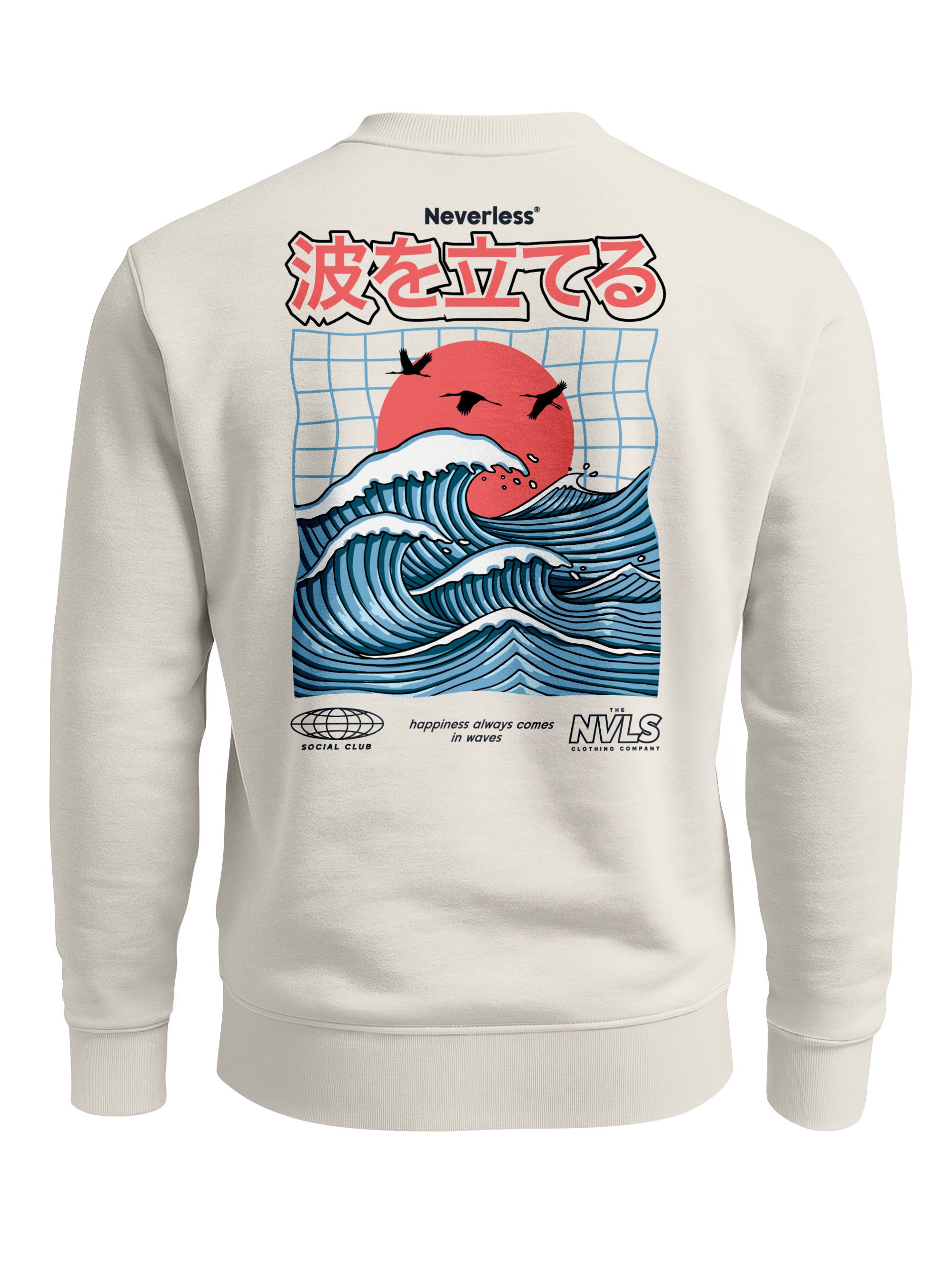 Sweatshirt Herren Pullover mit Backprint Rising Wave | Japan Design mit Wellenmotiv Fashion Streetwear Neverless®