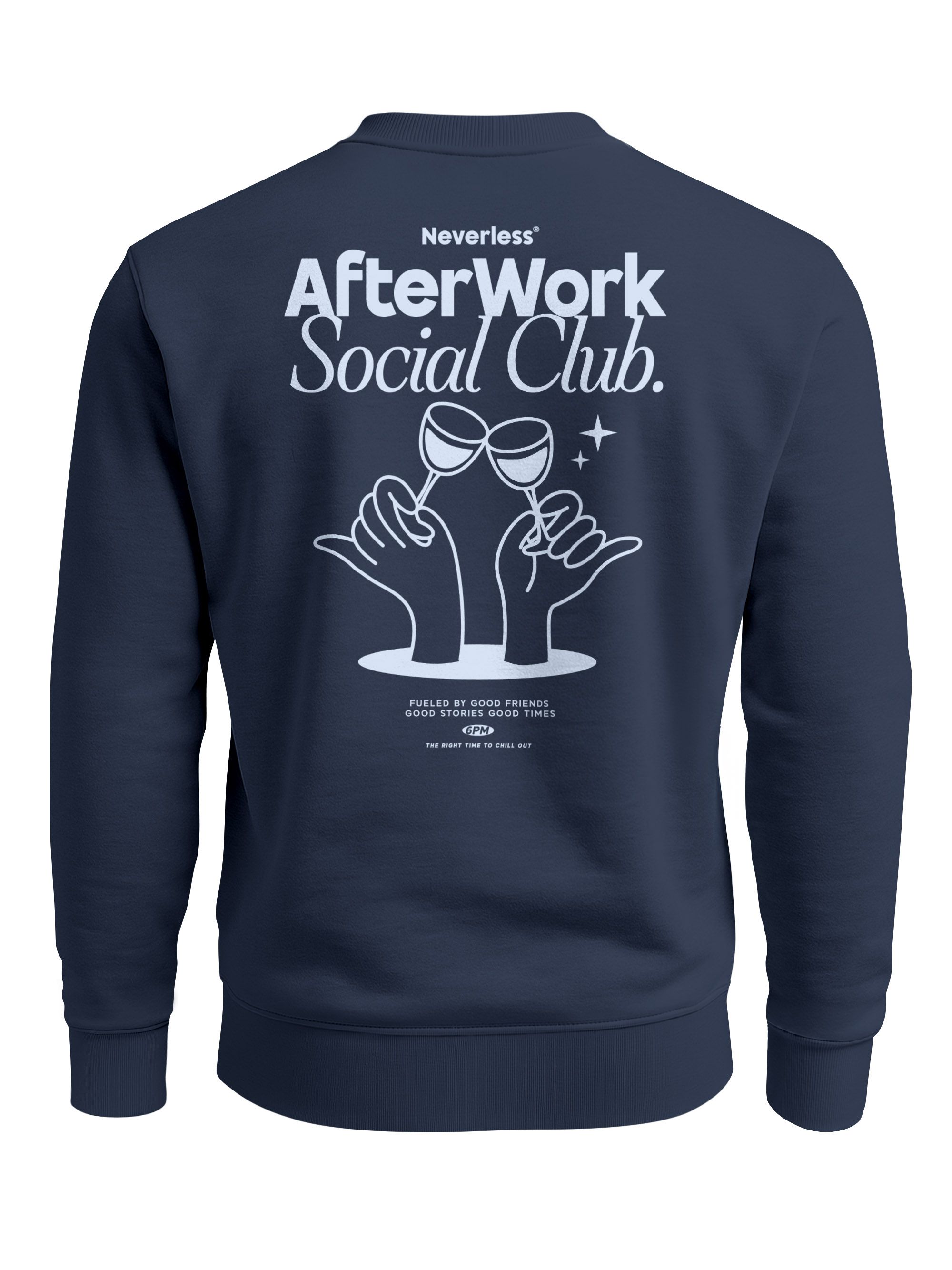 • COOLES SWEATSHIRT FÜR HERREN - mit „After Work Social Club“ Motiv mit Händen und Gläsern im Line Art Stil – ideal für Freizeit, Bar oder entspannte Abende mit guten Freunden und gutem Wein