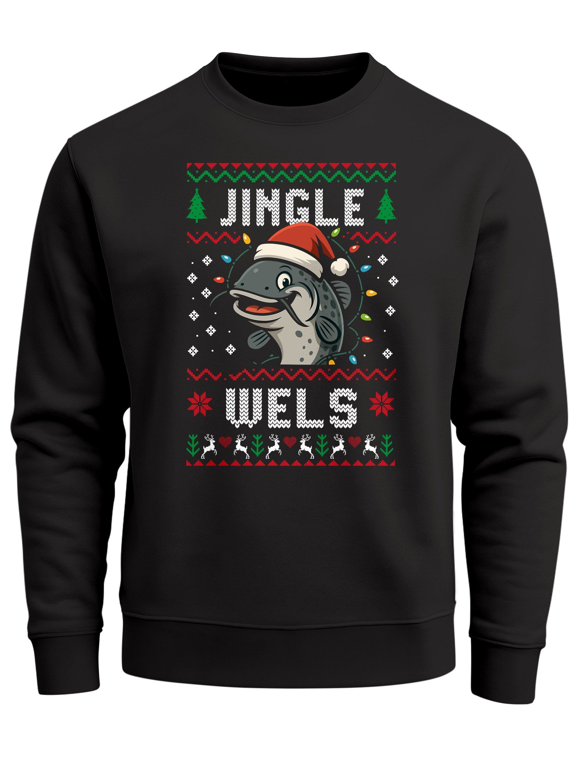 - Herren Weihnachtssweatshirt mit Wels-Motiv im Ugly-Christmas-Design – passend für Weihnachtsfeier, Party, Büro und als Geschenk für Angler und Freunde von Wortspiel-Motiven. Ideal für Ugly-Sweater-Events