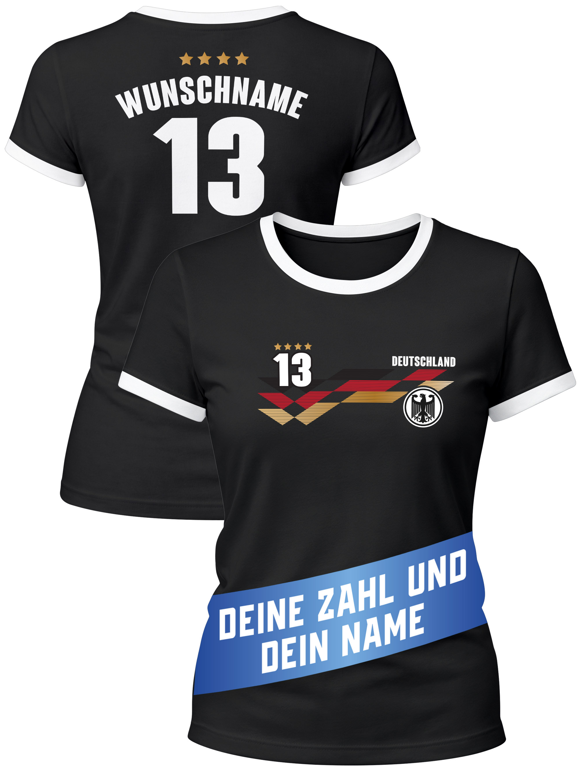 T-Shirt Damen Fussball Deutschland Trikot personalisiert mit Name und Nummer Weltmeisterschaft 2026 Fanshirt Moonworks