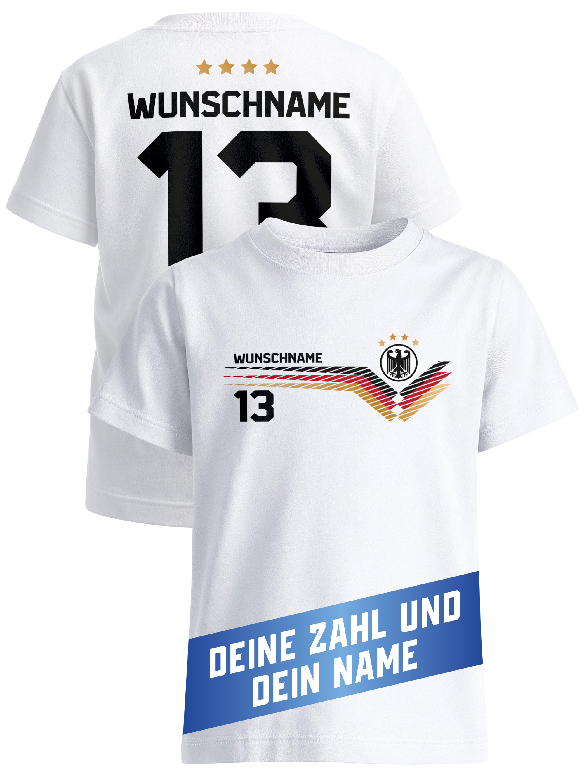 Du suchst eine originelle Geschenkidee für einen kleinen Fußballliebhaber? Dieses personalisierte Fußball Shirt mit Name und Nummer ist ein echtes Highlight. Ideal als Geschenk zum Geburtstag, zu Weihnachten, zum Schulstart oder zur großen Fußball WM 2026. Auch als Überraschung für den nächsten Stadionbesuch oder das gemeinsame Public Viewing sorgt dieses Kinder Fan-Shirt garantiert für Begeisterung. Ein personalisiertes Fußball T-Shirt für den nächsten Champion