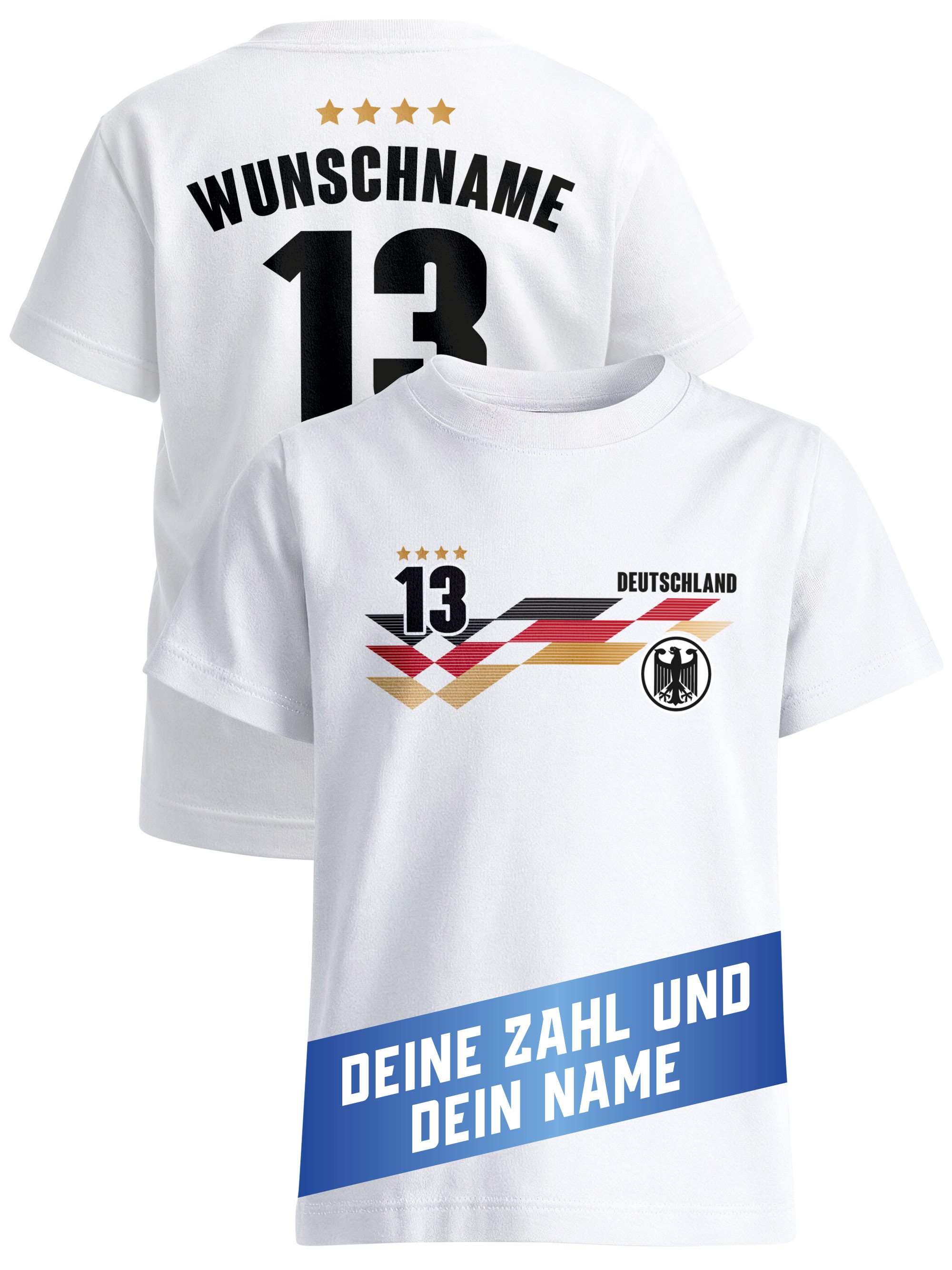 Mit diesem personalisierten Fußball T-Shirt im coolen Trikot-Style wird jeder Junge zum Star auf dem Platz. Das Shirt erinnert an ein echtes Fußballtrikot – mit sportlichem Frontdesign und individuellem Druck auf der Rückseite. So entsteht im Handumdrehen ein ganz persönliches Fußball Fan-Shirt für Kinder. Egal ob Bolzplatz, Schulhof, Stadionbesuch oder Public Viewing: Dieses Shirt macht kleine Fußballfans stolz wie echte Nationalspieler. Der beidseitige Druck sorgt für einen authentischen Trikot-Look. Vorne sportliches Fußballmotiv, hinten dein Wunschname und deine Nummer – genau so, wie man es von echten Fußballtrikots kennt. Ein personalisiertes Kinder T-Shirt, das garantiert Aufmerksamkeit bekommt.