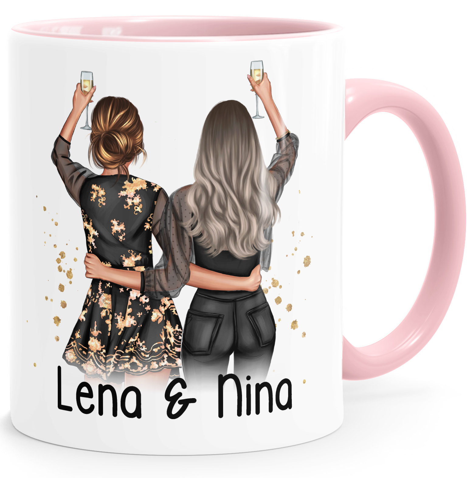 - Einfach online Tasse selbst gestalten - Vorder und Rückseite sind jeweils individuell anpassbar. Wähle deinen Wunschtext und gestalte euer Freundinnenbild nach deinen Vorstellungen. Wähle Haarfarbe, Frisur, Kleidung und Accessoires aus und gebe zusätzlich deine Wunschnamen ein