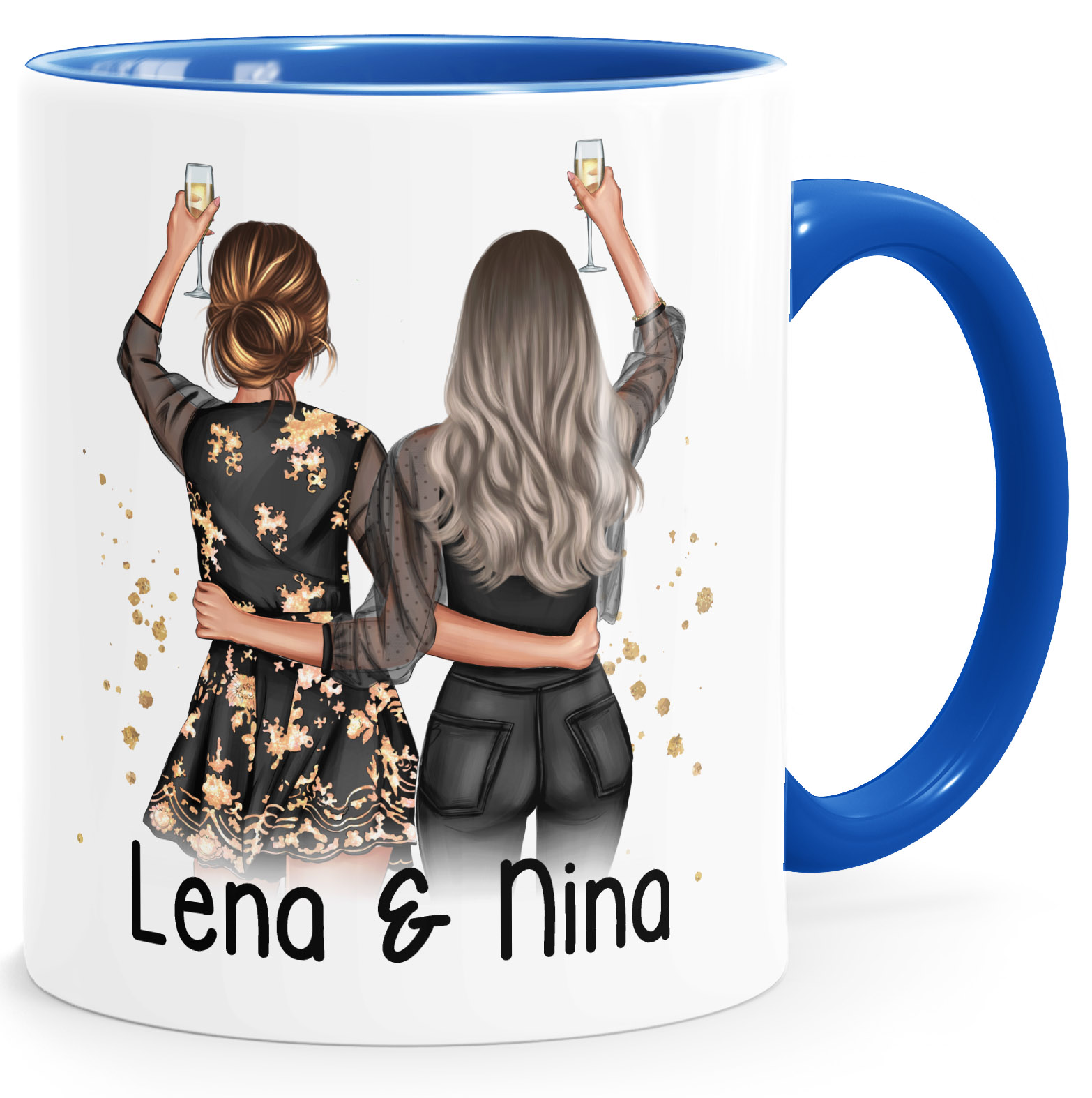 - Einfach online Tasse selbst gestalten - Vorder und Rückseite sind jeweils individuell anpassbar. Wähle deinen Wunschtext und gestalte euer Freundinnenbild nach deinen Vorstellungen. Wähle Haarfarbe, Frisur, Kleidung und Accessoires aus und gebe zusätzlich deine Wunschnamen ein