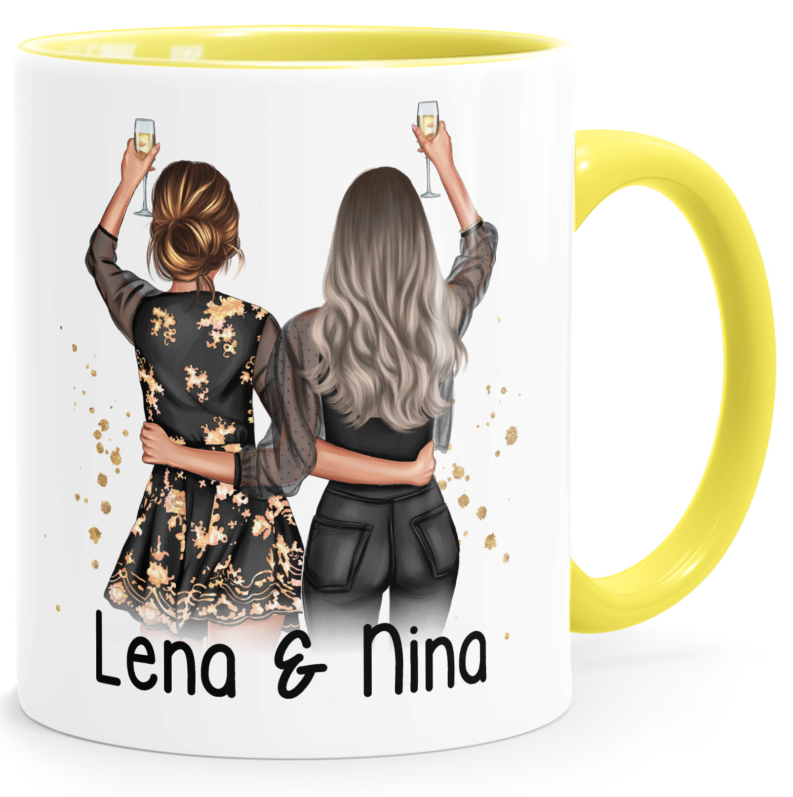 - Einfach online Tasse selbst gestalten - Vorder und Rückseite sind jeweils individuell anpassbar. Wähle deinen Wunschtext und gestalte euer Freundinnenbild nach deinen Vorstellungen. Wähle Haarfarbe, Frisur, Kleidung und Accessoires aus und gebe zusätzlich deine Wunschnamen ein