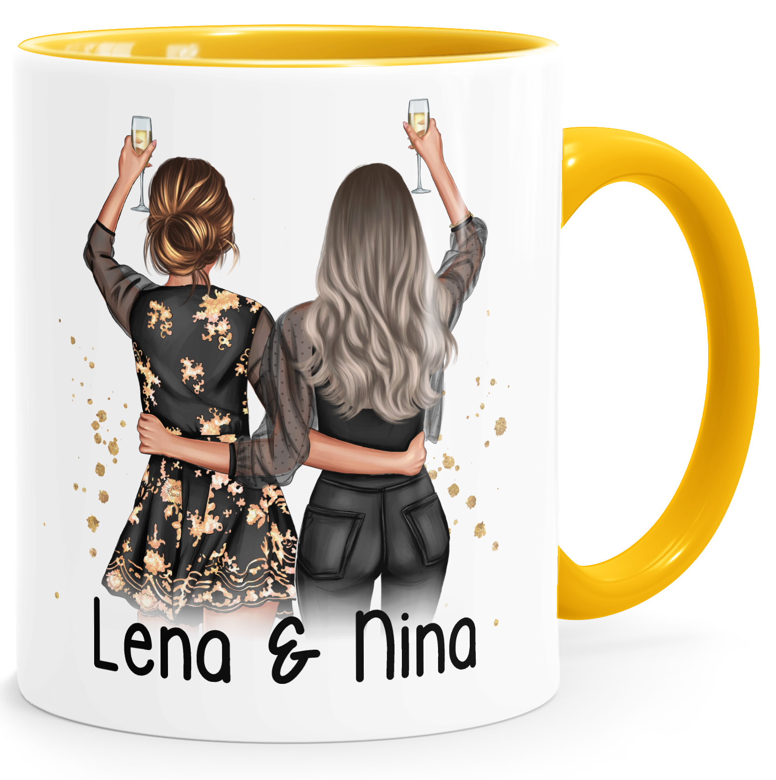- Einfach online Tasse selbst gestalten - Vorder und Rückseite sind jeweils individuell anpassbar. Wähle deinen Wunschtext und gestalte euer Freundinnenbild nach deinen Vorstellungen. Wähle Haarfarbe, Frisur, Kleidung und Accessoires aus und gebe zusätzlich deine Wunschnamen ein