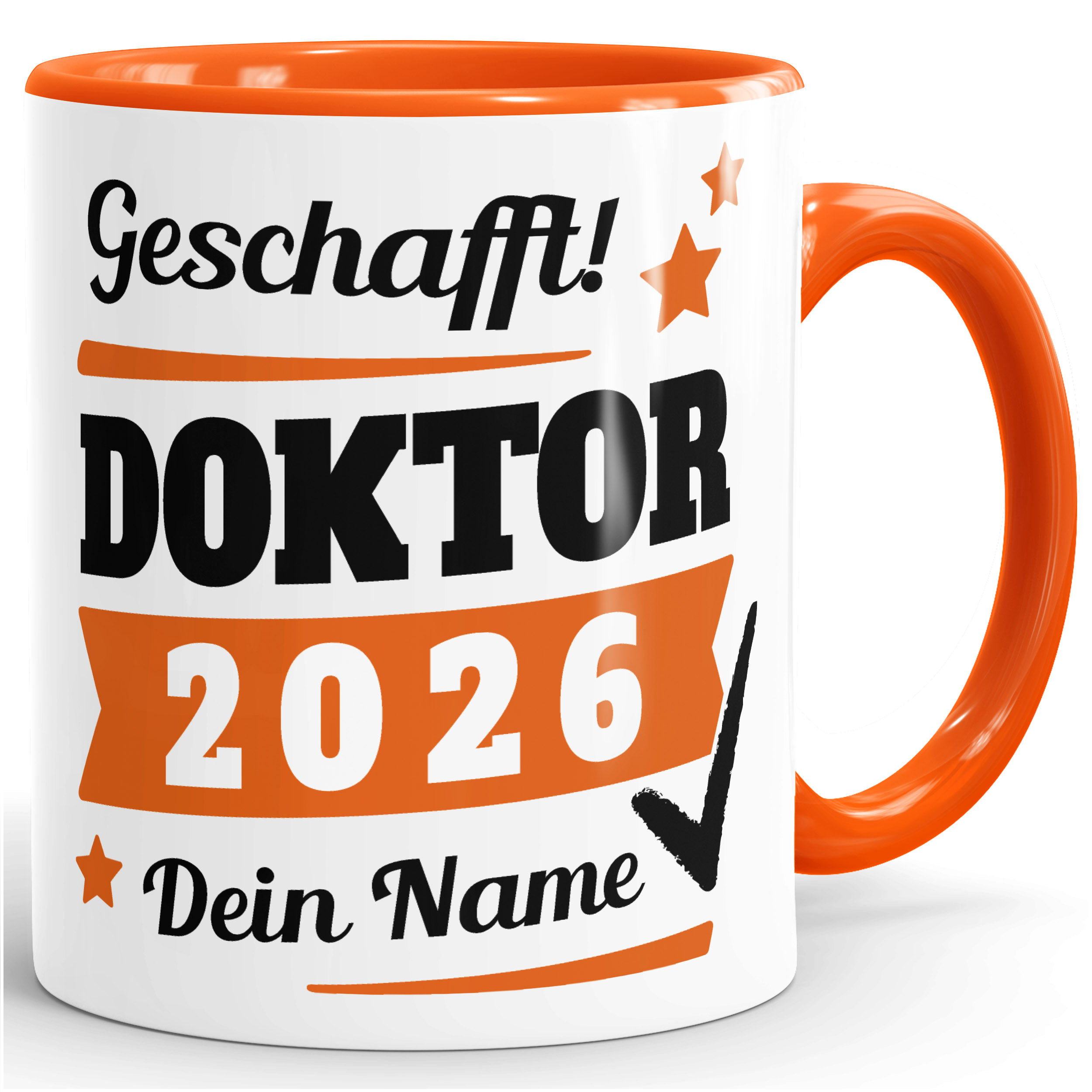 - Motiv: Aufdruck "Geschafft!-Doktor" und anpassbares Abschluss-Jahr - personalisierbar mit Wunschname