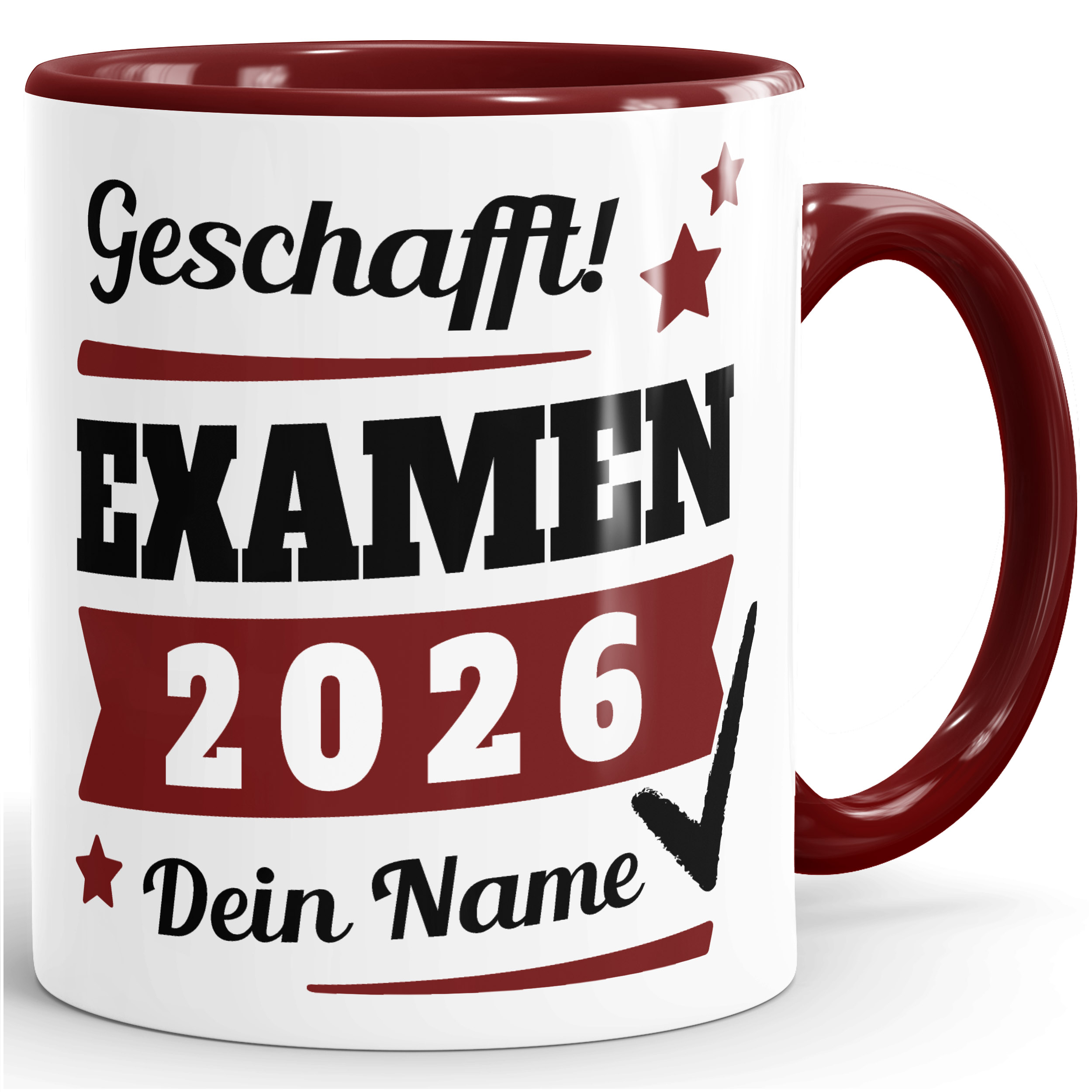 - Ein Hut als Geschenk zum bestandenen Examen war gestern! ;-) 2026 gibt es eine Abschluss-Tasse. Geschafft! Das muss gefeiert werden. Eine coole Tasse mit dem eigenen Namen und dem Abschluss-Jahr wird immer an dieses besondere Ereignis erinnern