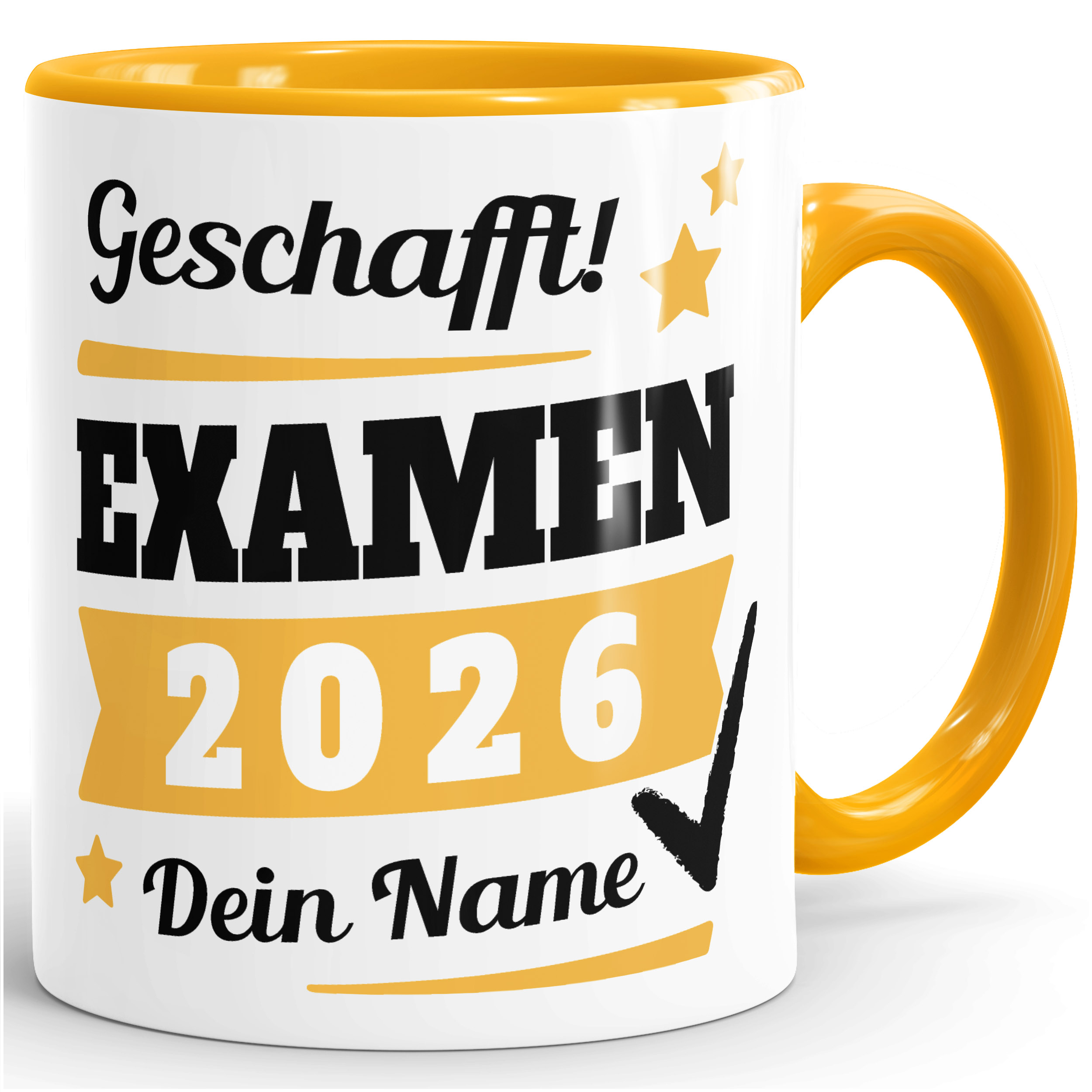 - Ein Hut als Geschenk zum bestandenen Examen war gestern! ;-) 2026 gibt es eine Abschluss-Tasse. Geschafft! Das muss gefeiert werden. Eine coole Tasse mit dem eigenen Namen und dem Abschluss-Jahr wird immer an dieses besondere Ereignis erinnern