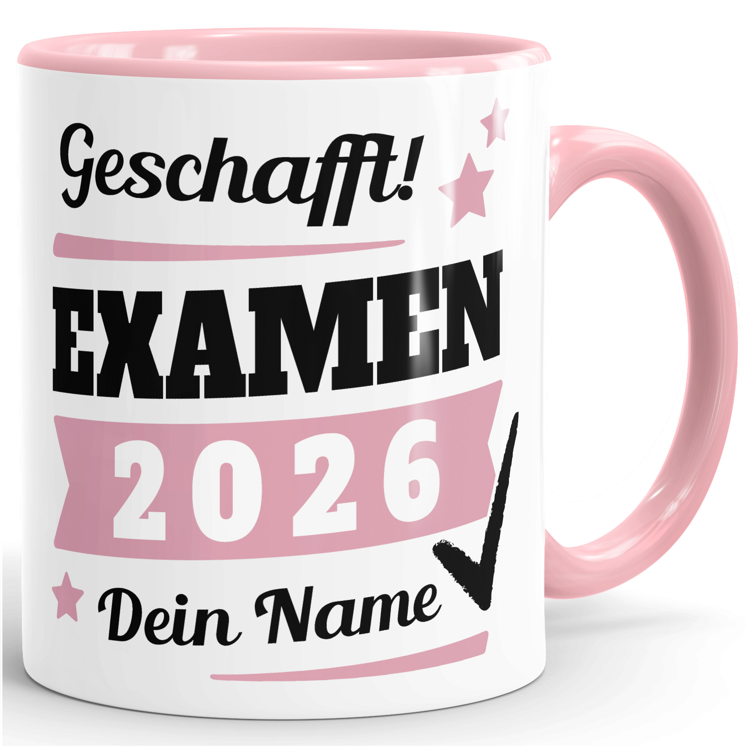 - Ein Hut als Geschenk zum bestandenen Examen war gestern! ;-) 2026 gibt es eine Abschluss-Tasse. Geschafft! Das muss gefeiert werden. Eine coole Tasse mit dem eigenen Namen und dem Abschluss-Jahr wird immer an dieses besondere Ereignis erinnern