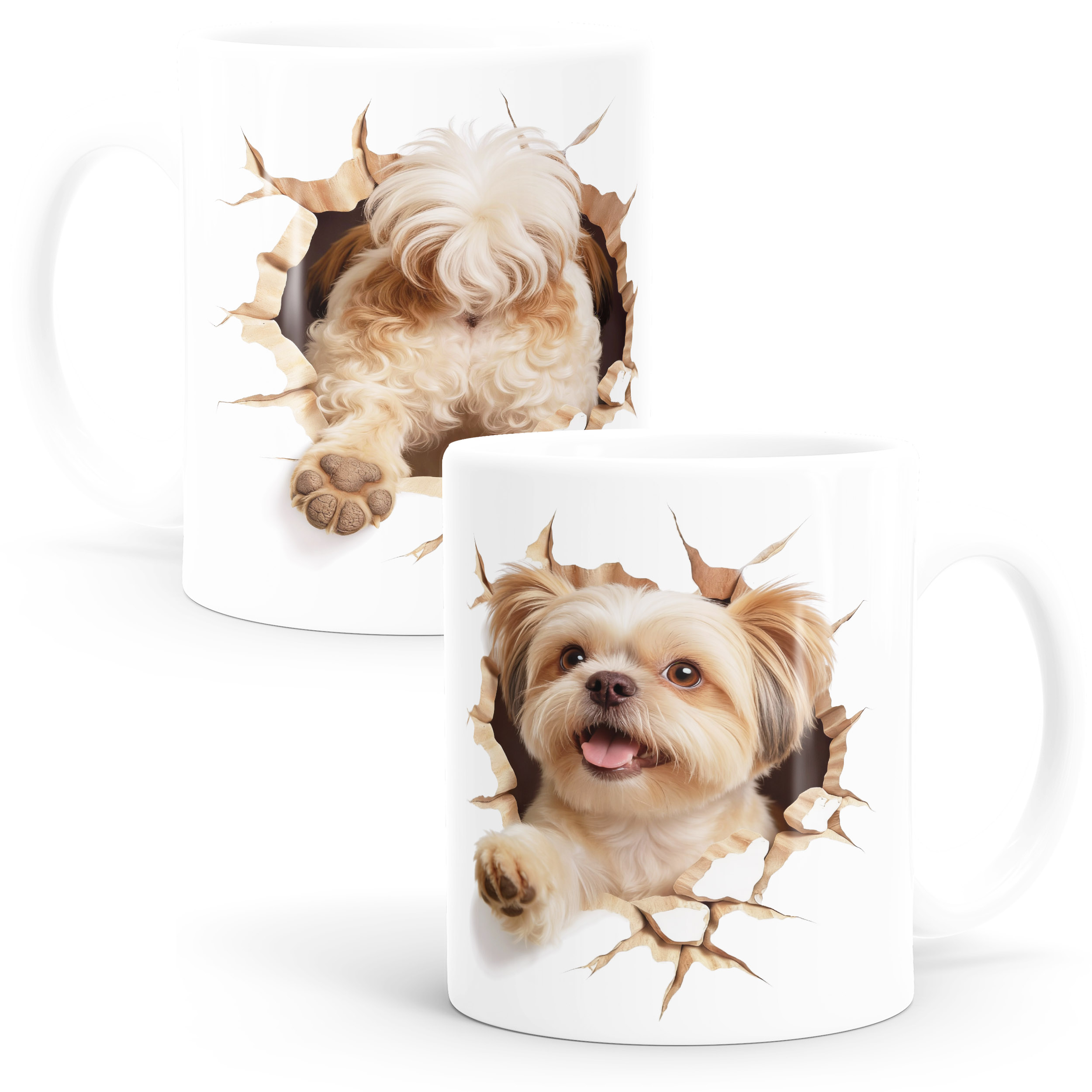 • Diese lustige Tasse mit realistischem 3D-Hunde-Motiv ist ein echter Hingucker für jeden Hundefan – Eine einzigartige Geschenkidee für {style_variation_string} Freunde und alle Fellnasen-Liebhaber. Perfekt als als persönliche Hunde-Tasse für Zuhause und Büro