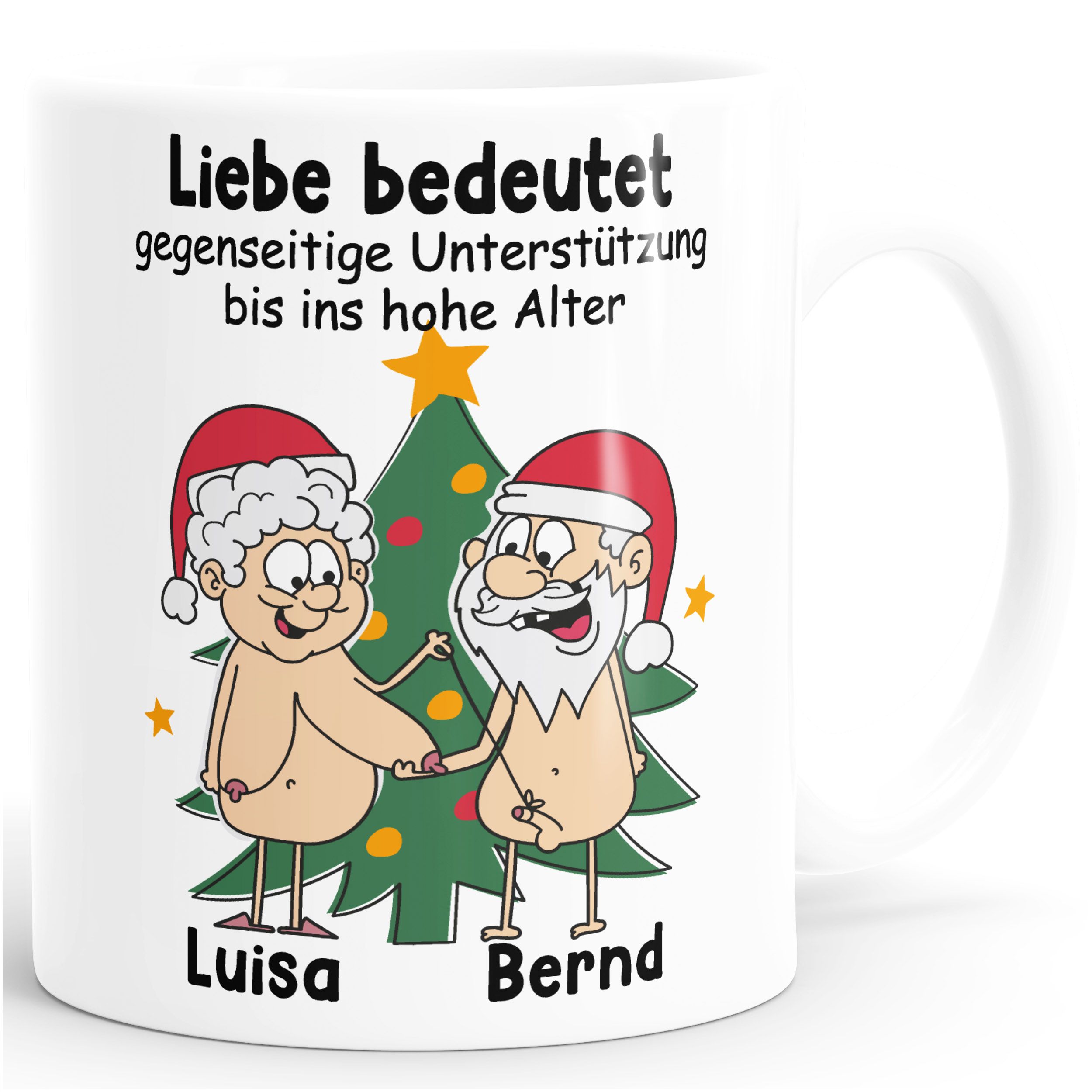 - Lustige Geschenk-Tasse für Paare und Eheleute. Das witzige Design zum Motto "gemeinsam gegen sie Schwerkraft" bringt deinen Partner bestimmt zum Lachen. Personalisieren kannst du die Tasse online mit euren eigenen Namen