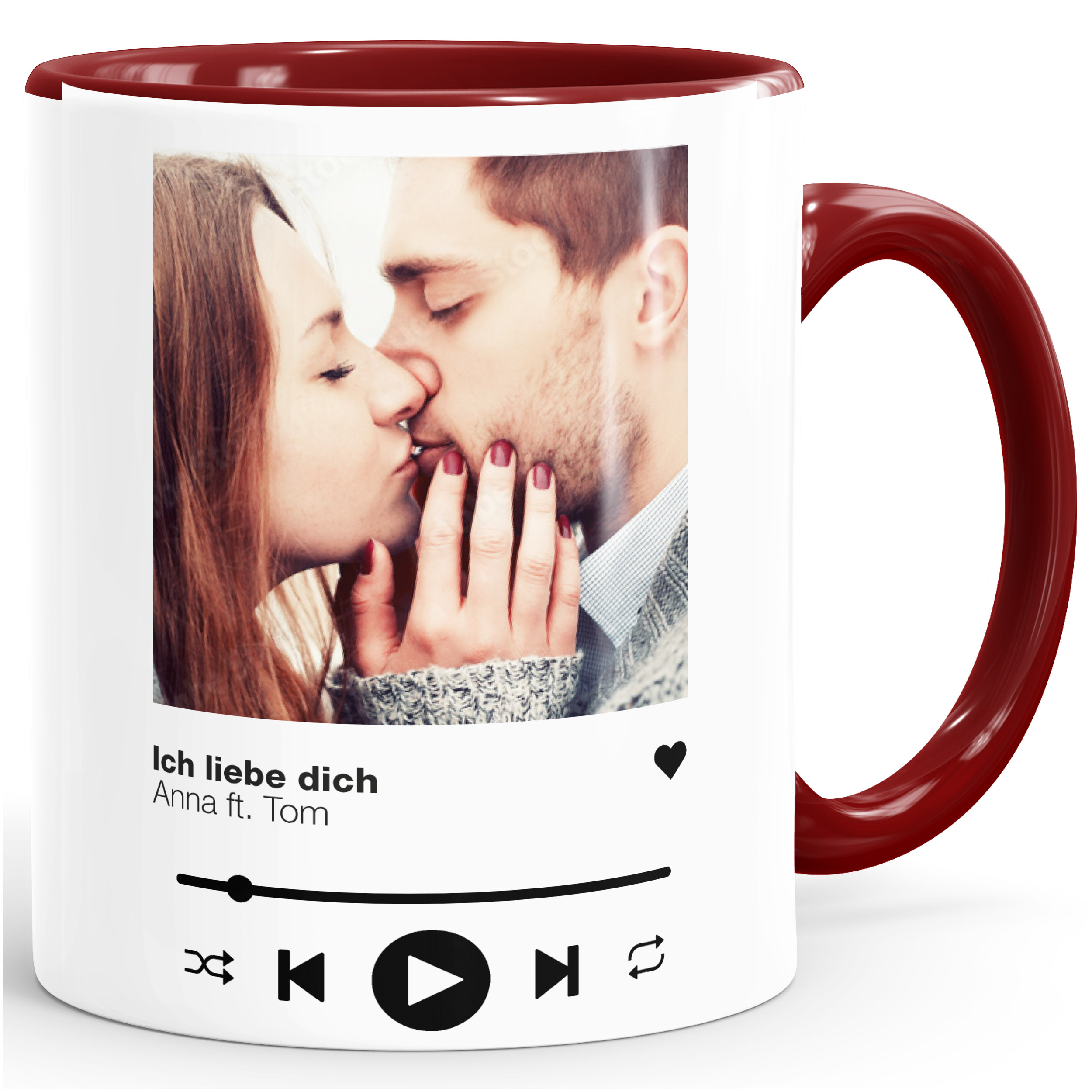 - anpassbares Motiv (rundum bedruckt): Musik, Playlist, Song-Cover individualisierbar mit eigenem Foto, Text und Namen