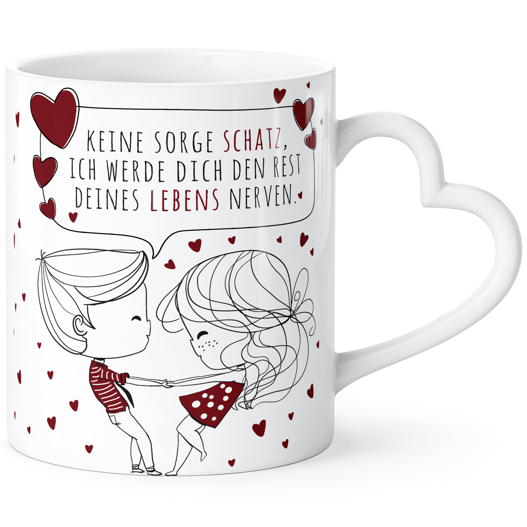 - Ein ganz besonderes Geschenk für den Partner: Eine Kaffee-Tasse mit Henkel in Herzform und personalisierbarem romantischem Motiv oder Spruch. Unsere süßen Liebespärchen mit Liebes-Botschaften sind einfach zauberhaft und wahlweise auch mit anpassbaren Wunsch-Namen produzierbar