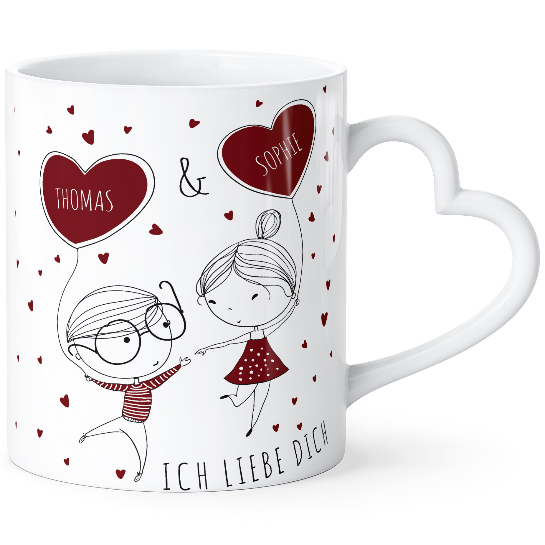 Geschenke die Liebe ausdrücken - romantische Geschenk-Tassen mit Namen und Herzgriff